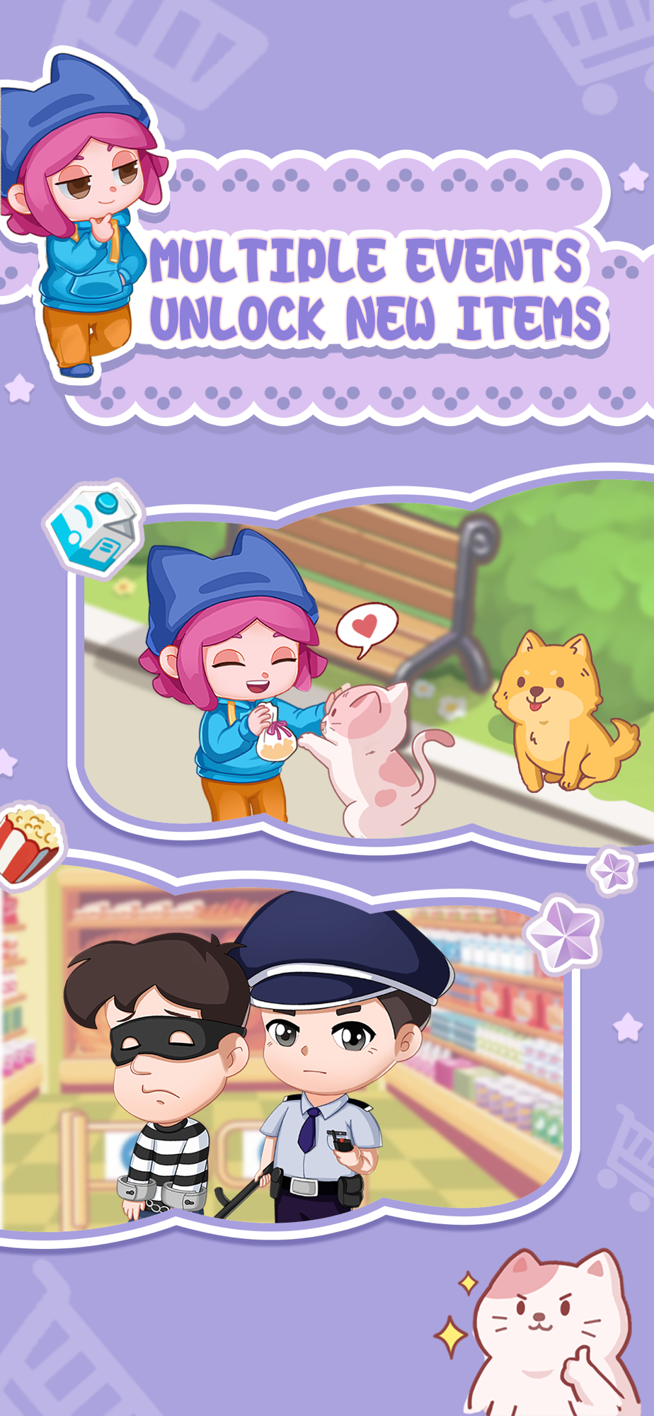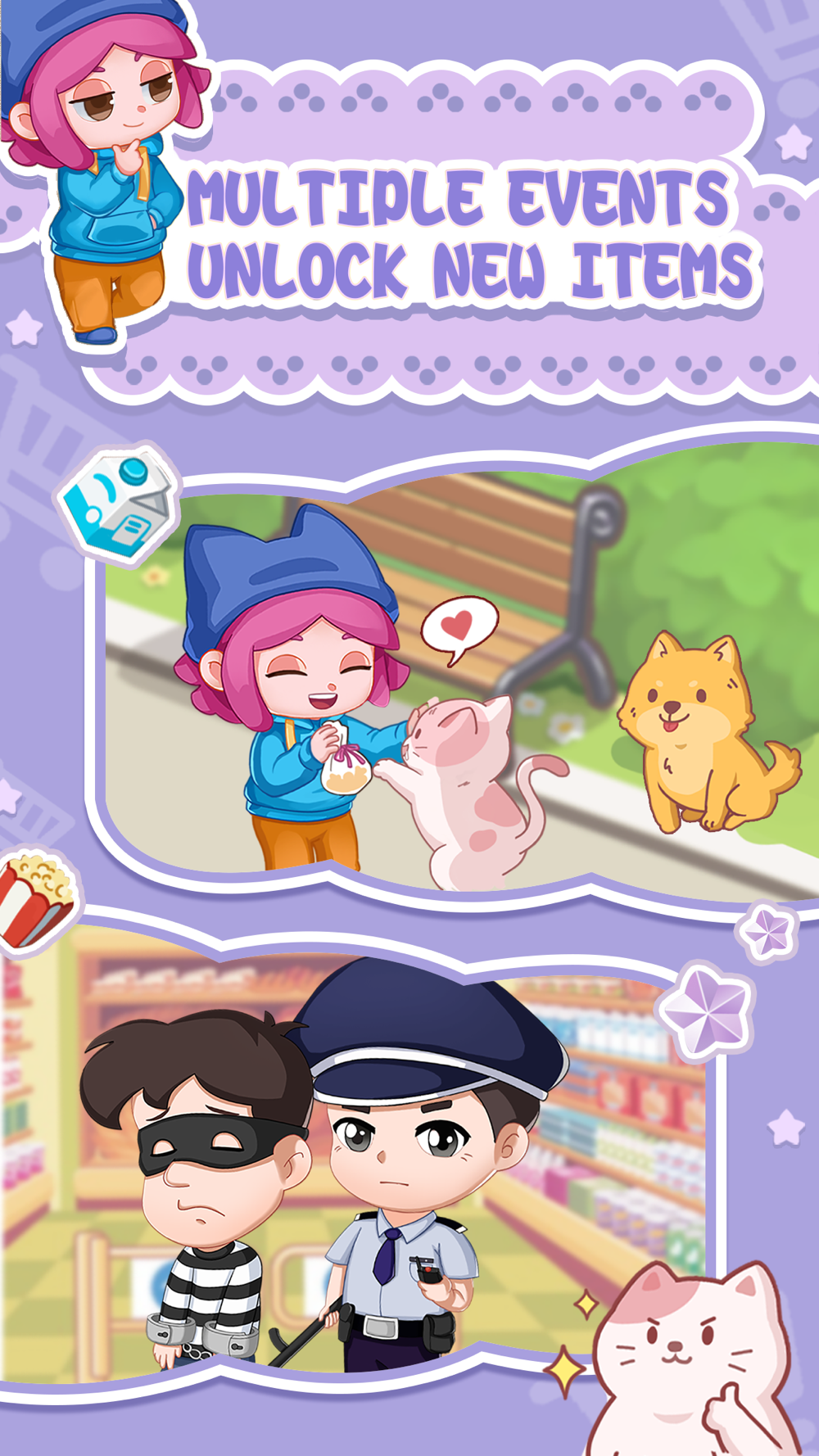 -In addition to business management, you can also finish puzzles to earn various items to decorate your cute little superstore!
