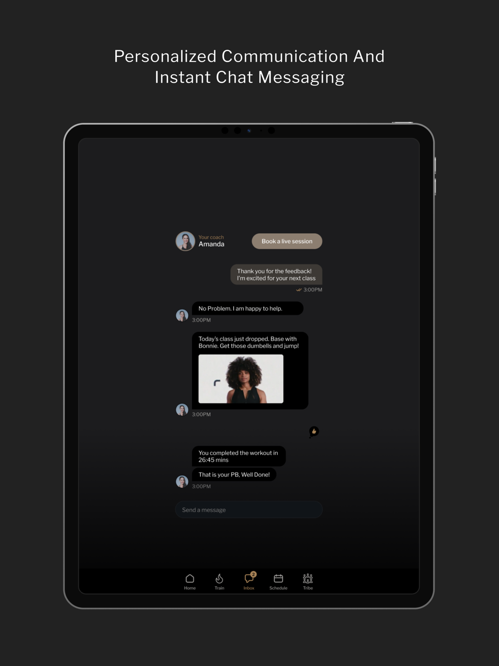 Enjoy real-time instant chat messaging with your own personal Head Coach anytime, anywhere. Build community by connecting with your Tribe directly from the app. Connect with your Personal Trainer virtually wherever is most convenient for you.