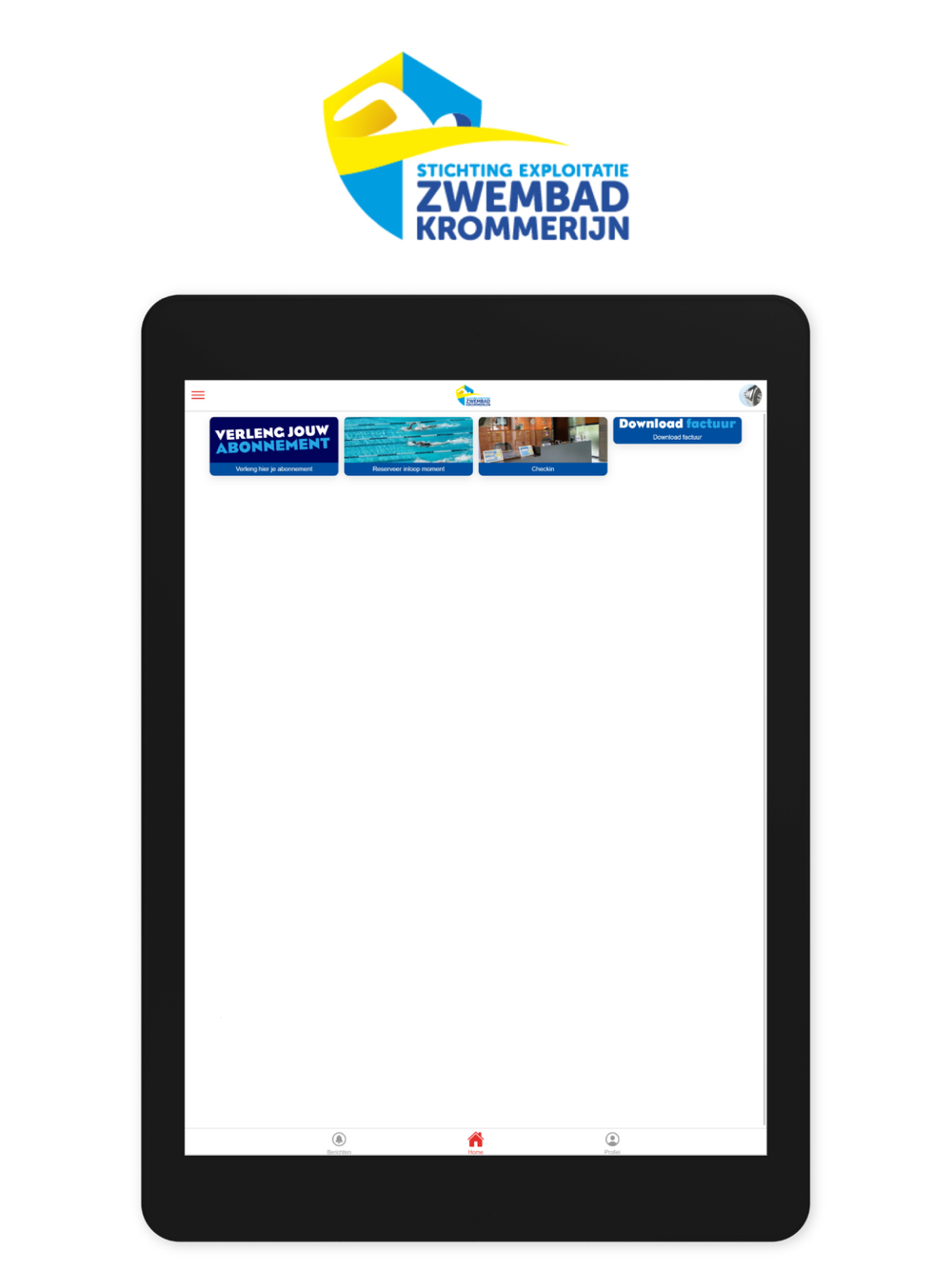 Als abonnementhouder bij Stichting Exploitatie Zwembad Krommerijn kan je onze app gebruiken om je inlooptijd te reserveren, in te checken in het zwembad of om je abonnement te verlengen.