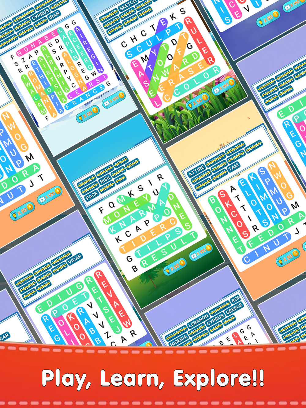 The game is easy to play, slide the letter up, down, left, right, diagonal in any of the eight directions. Search and find all hidden words in the grid. Increase your vocabulary and exercise your brain!