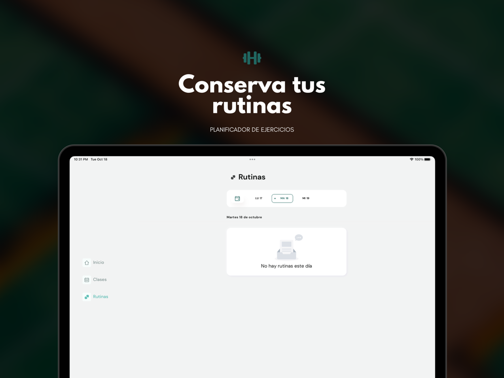 Te permitirá acceder rápidamente a tu perfil, reservar tus clases y ver el trabajo del día de tu centro deportivo.