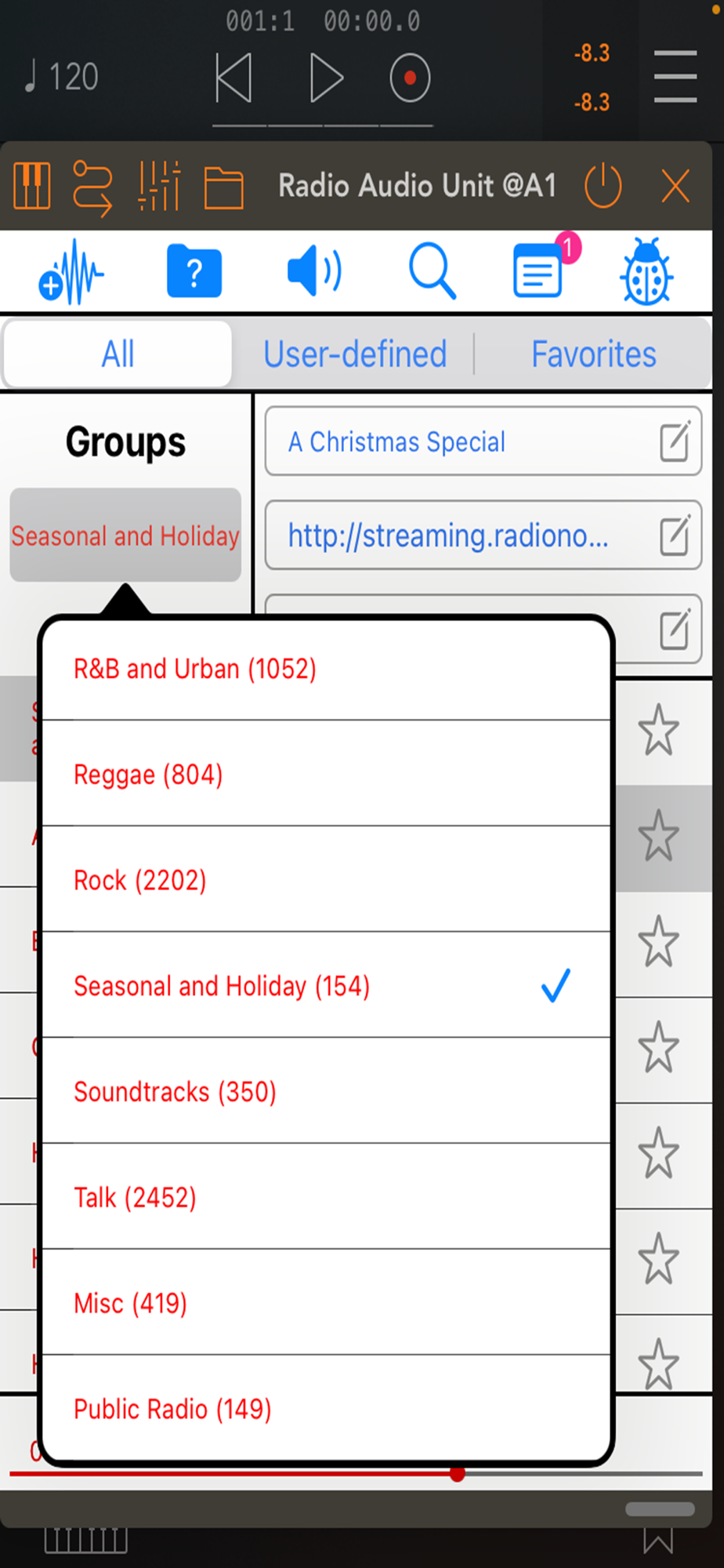 Radio Audio Unit is an audio unit plugin that plays internet radio stations(37,000+). They are divided into groups(blues, classical, country...) and genres(acoustic blues, country blues, delta blues ...). Radio Audio Unit can be used inside of an audio unit host app such as GarageBand in conjunction with 3rd party audio effect plugins (not included) to enhance listening experience.