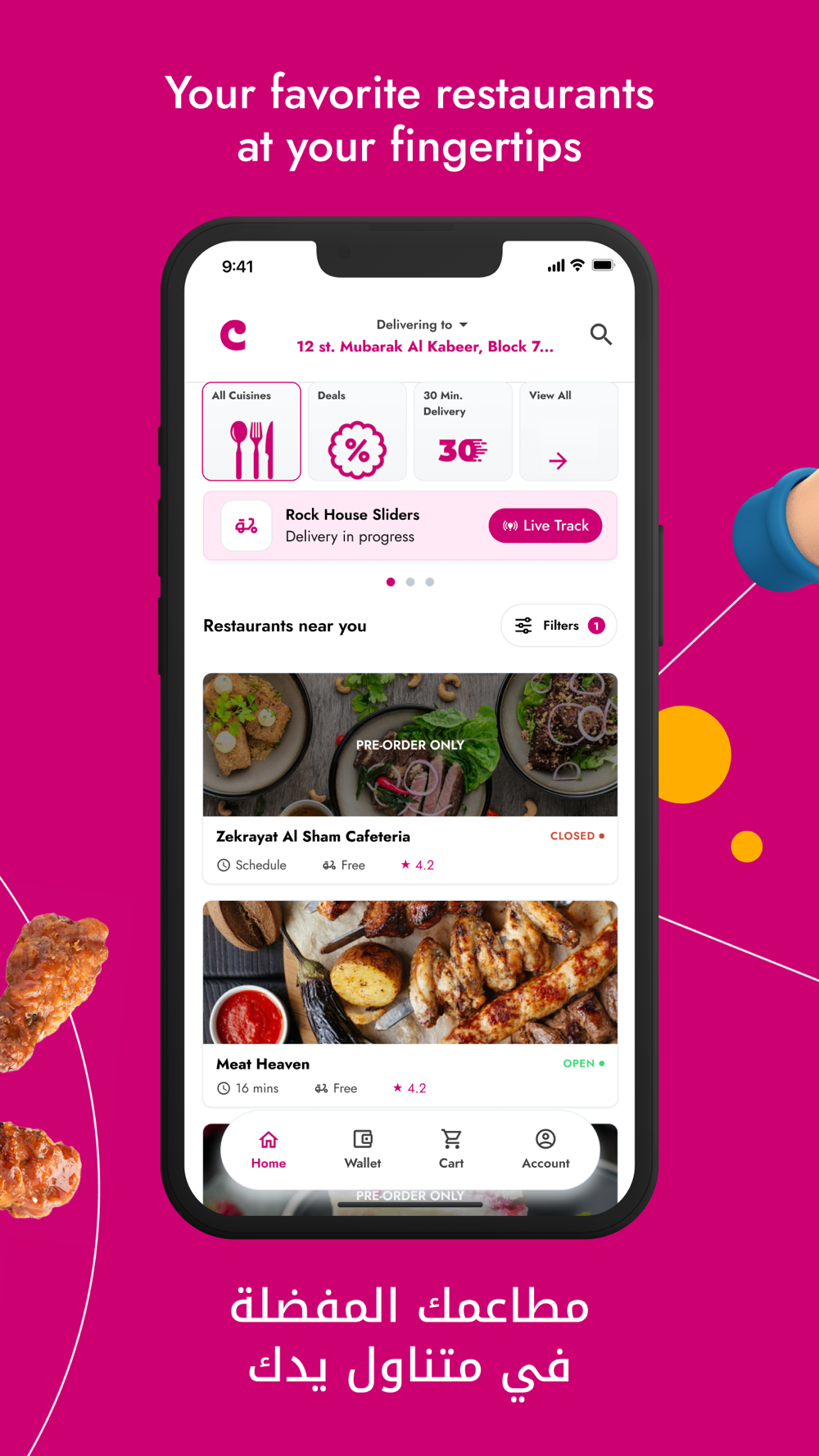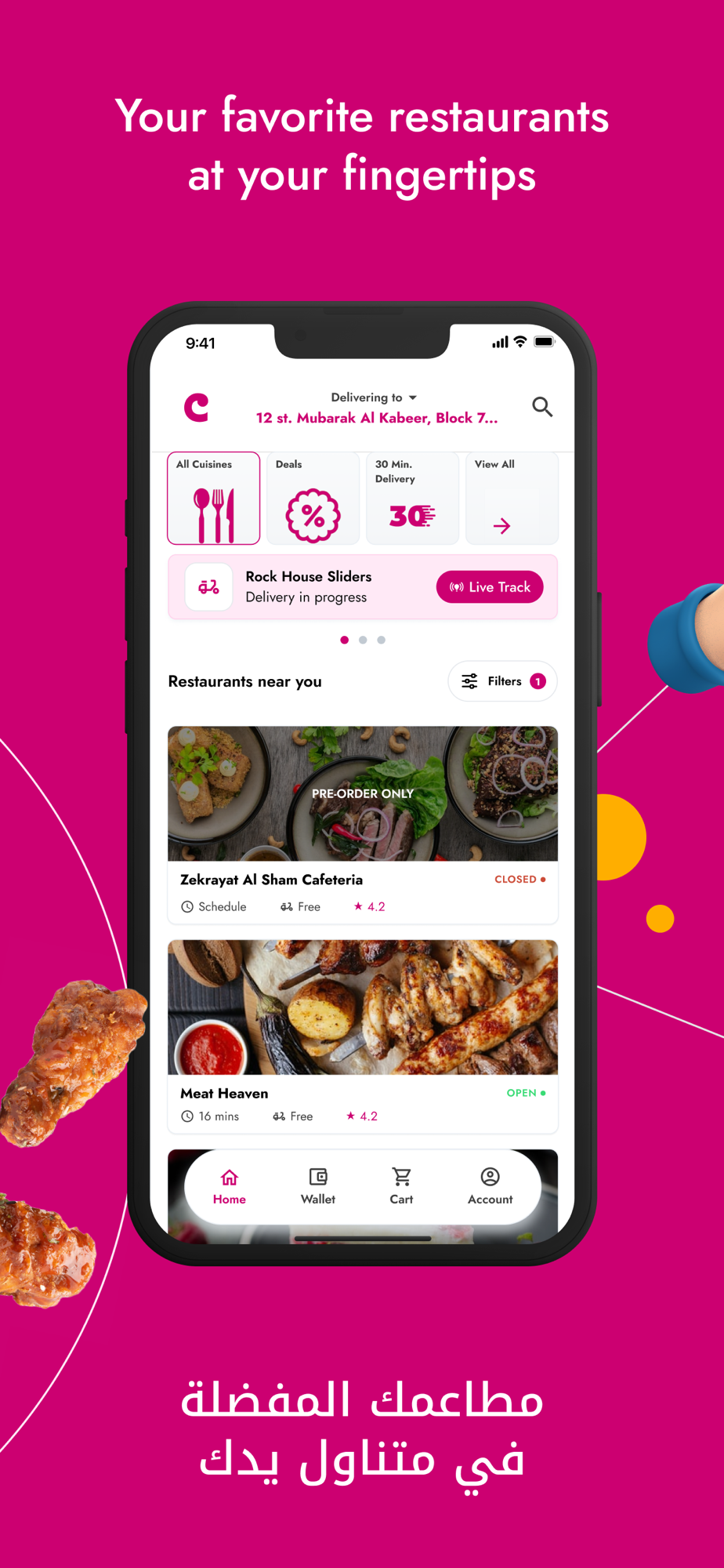 Cari offers the best food delivery service in the region. Order food from your favorite restaurants in just a few taps and get it delivered in just 30 minutes, guaranteed!