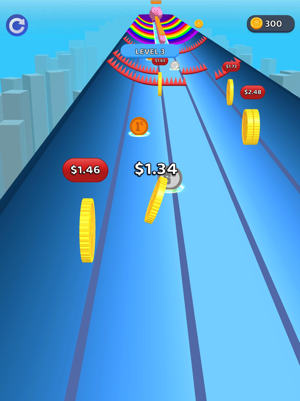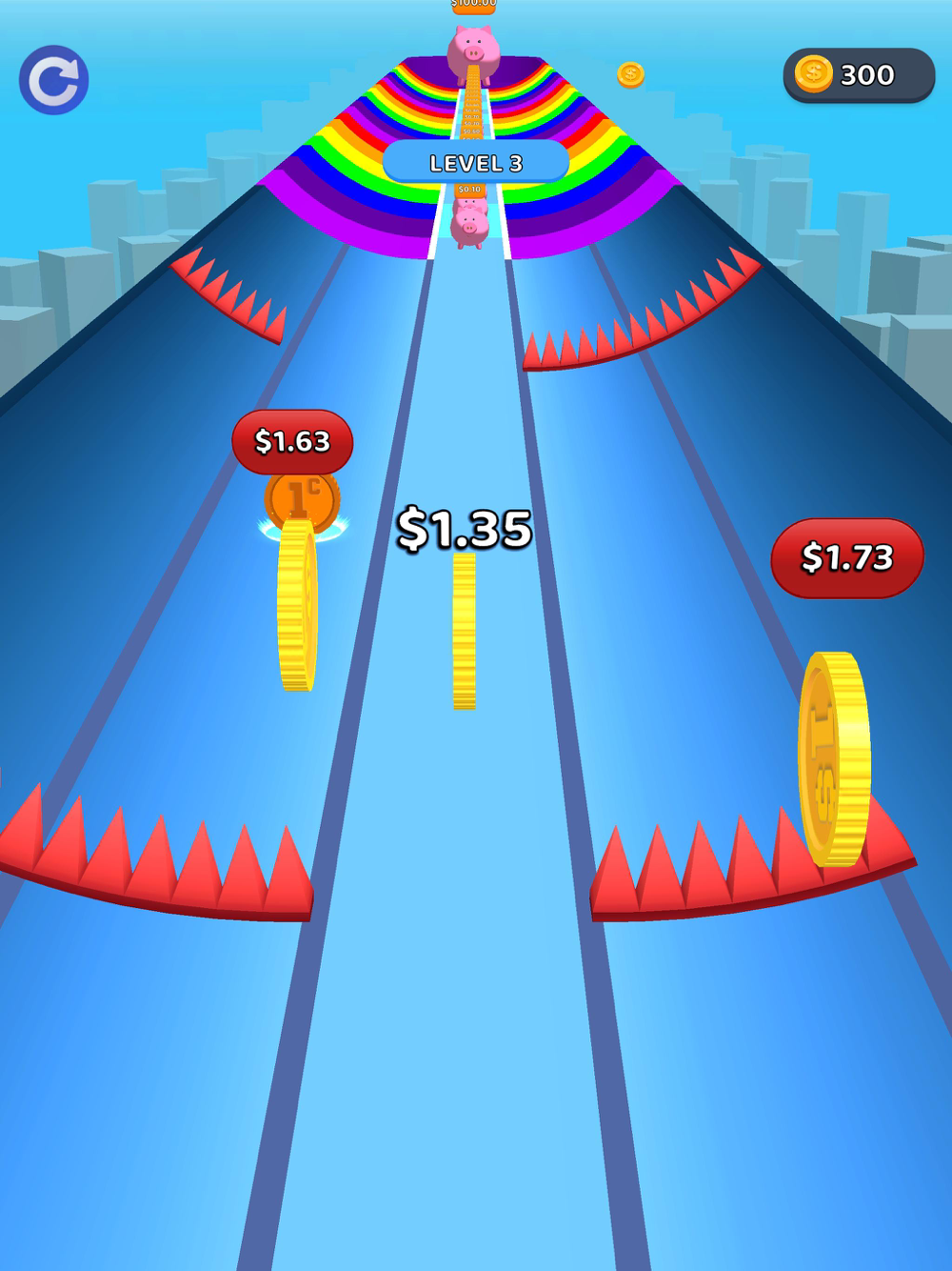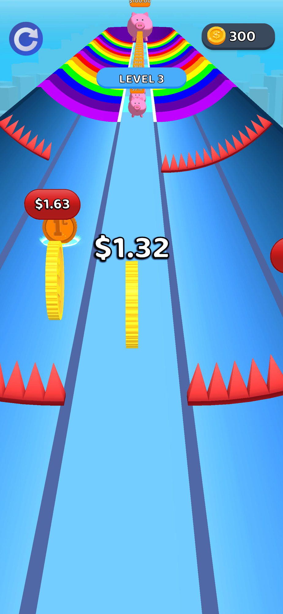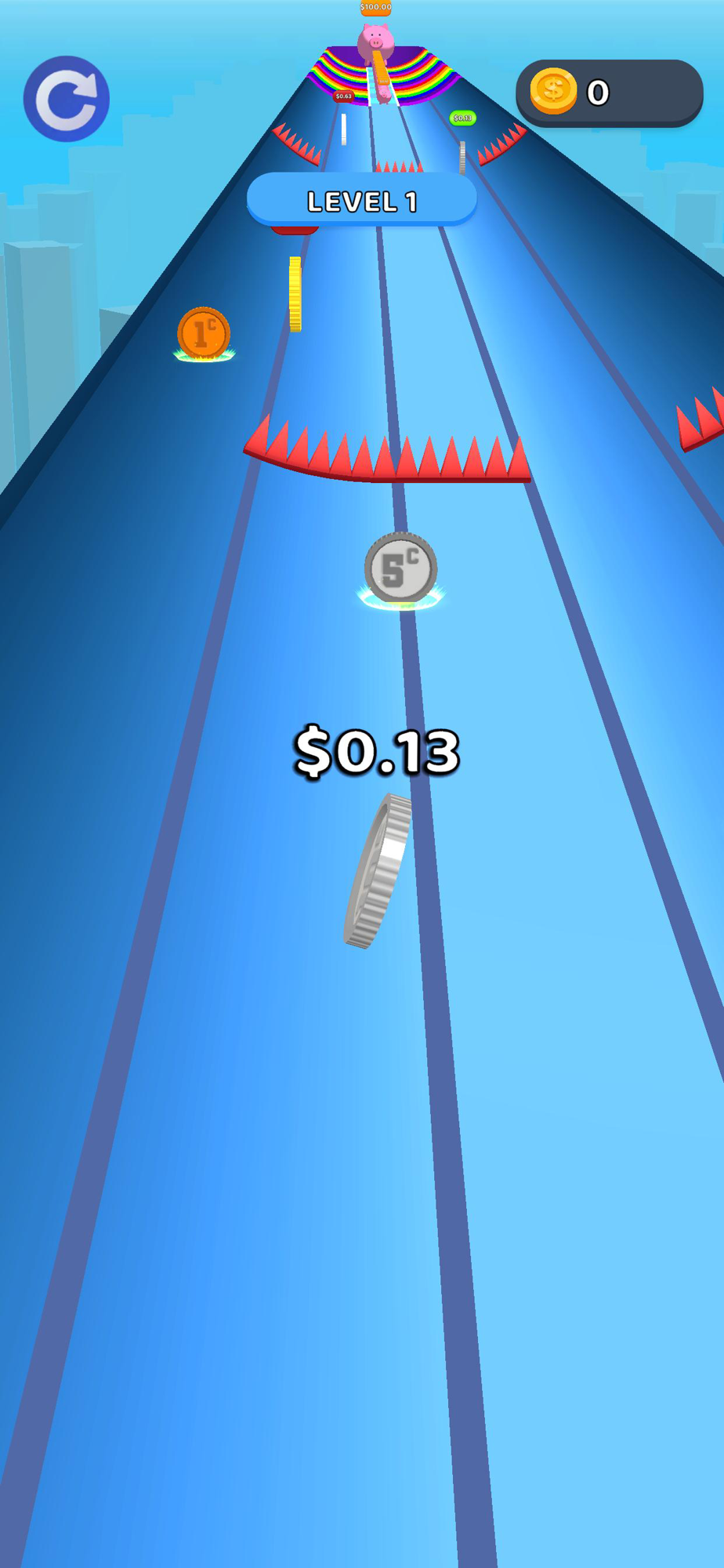 Race through the platform and reach the great piggy bank
