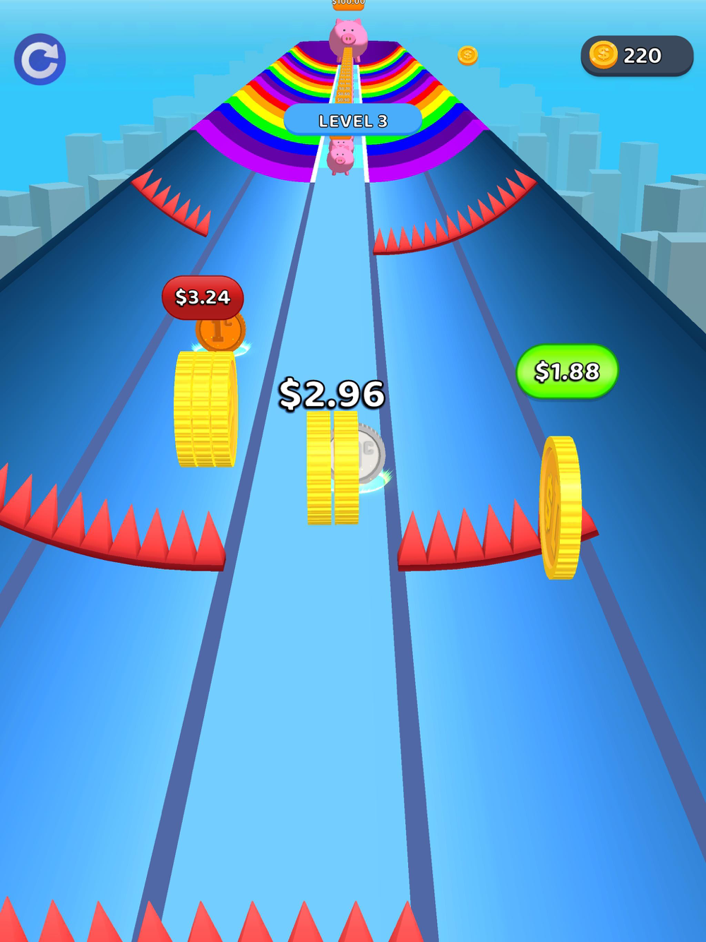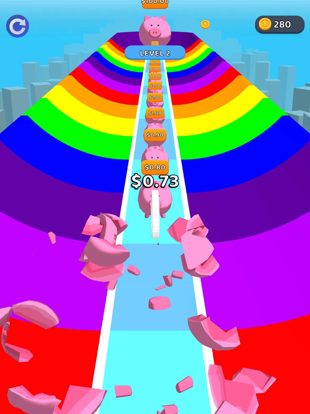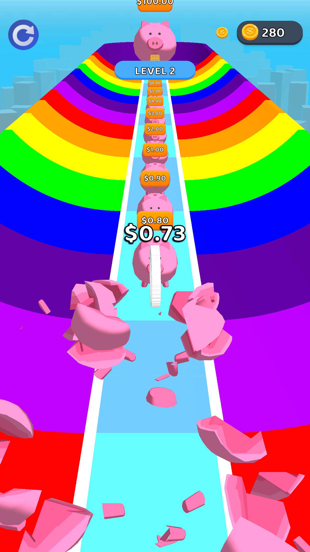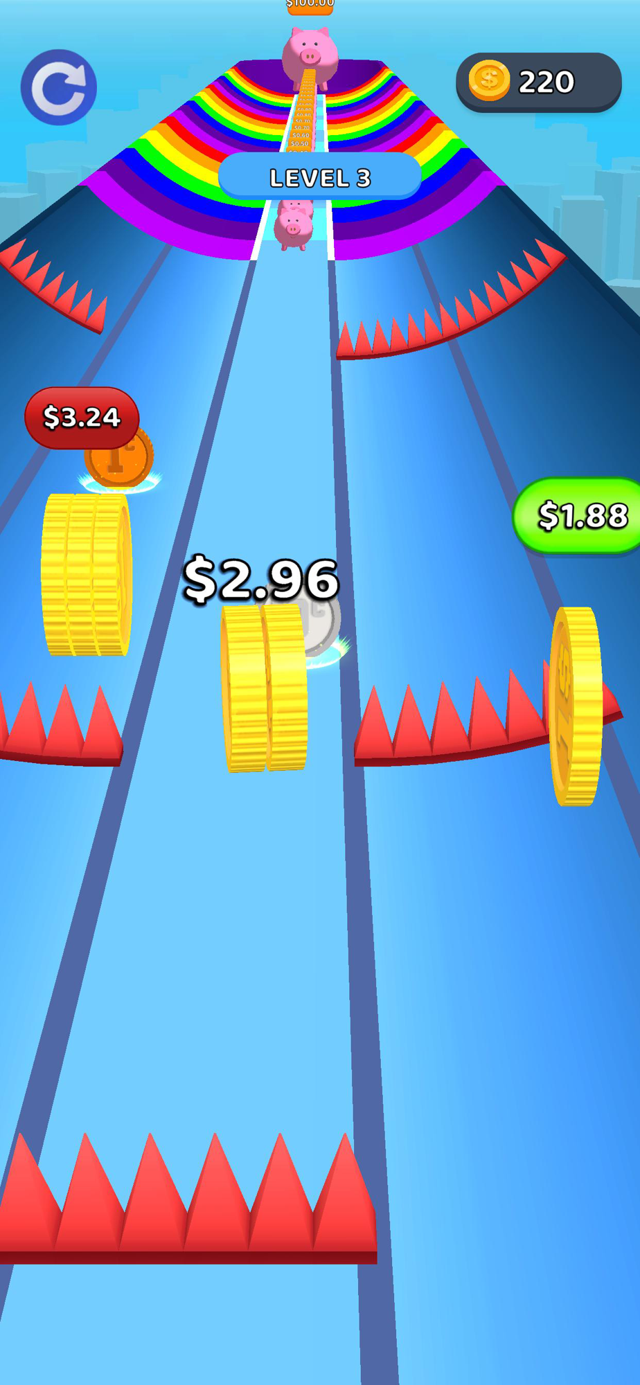 Race through the platform and reach the great piggy bank