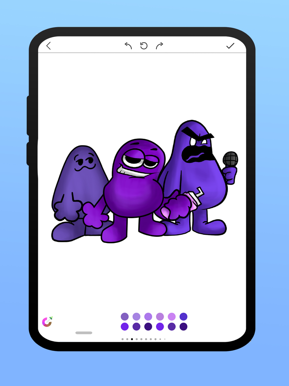 Download our coloring app now and awaken the artist within. Explore the charm of "Grimace Shake Coloring" as you bring vivid colors to your screen and unleash your creativity like never before. Get ready to be swept away in a world of fun and imagination!