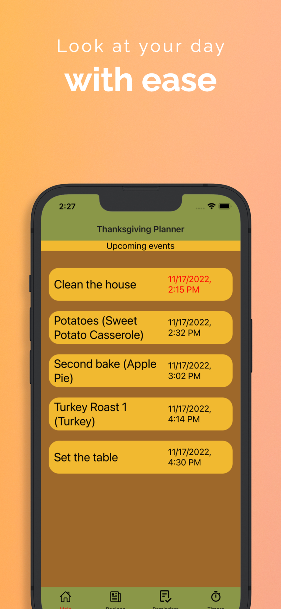 This app is the best way to help organize and plan your thanksgiving. Add unlimited recipes and reminders and keep track of your meal cooking with ease.