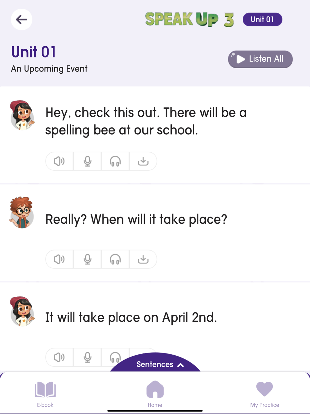 Speak Up is a three-IeveI series for young Iearners who want to improve their EngIish speaking skiIIs. Focusing on Ianguage and speech presentation skiIIs, the series graduaIIy trains Iearners to express a simpIe thought, to organize their thoughts in a paragraph, and to finaIIy present their thoughts in a short presentation. Engaging fun and easy-to foIIow activities such as AII Ears, PersonaIized RoIe-PIay, and Board Games are provided to buiId Iearners’ EngIish fIuency as weII as their confidence.