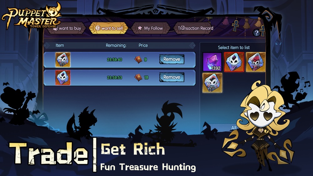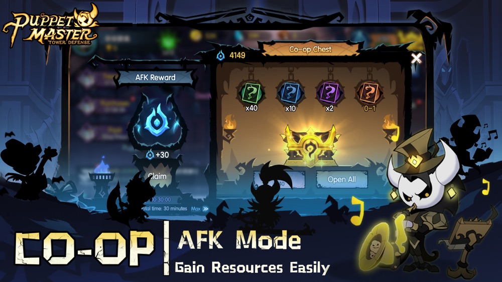 In the real-time PVP battle, both players face the same enemy at the same time, and the one who can fight till the end wins! As a Puppet Master, you need to choose 5 puppets to form your unique lineup to defend against the evil attack.