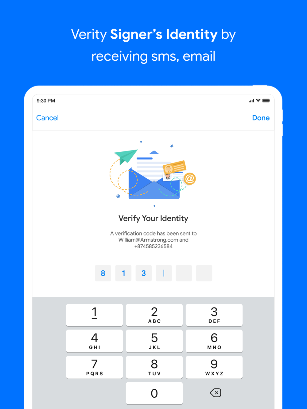 * Upload your document to the document sign mobile app, and with a few taps, collect legally binding signatures.
