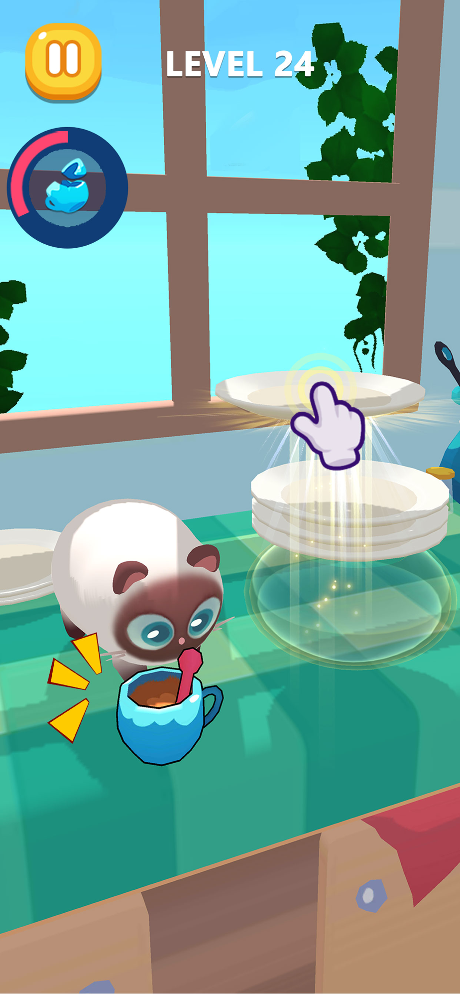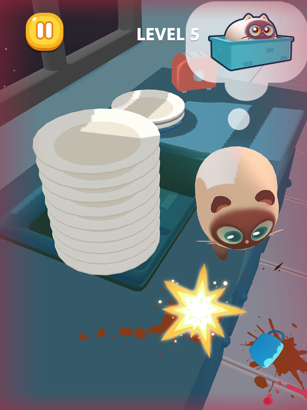 Only when you remove the last obstacle, the lovely cat will jump into it, as if it were filling the whole container with liquid. It looks very naive and makes people laugh.