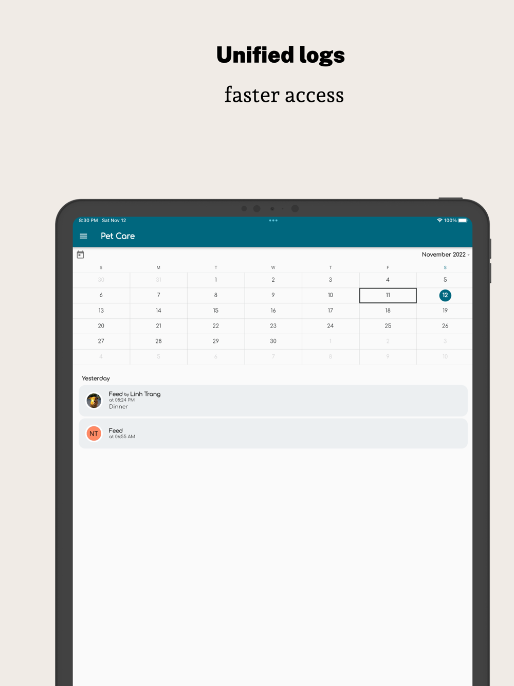 Not a super feature, but I found that many apps don't allow you to have a place where you can see a day 's events from all your pets. This is very convenient as you don't need to navigate between each pet just to check the log.