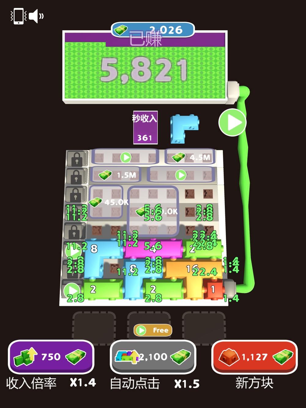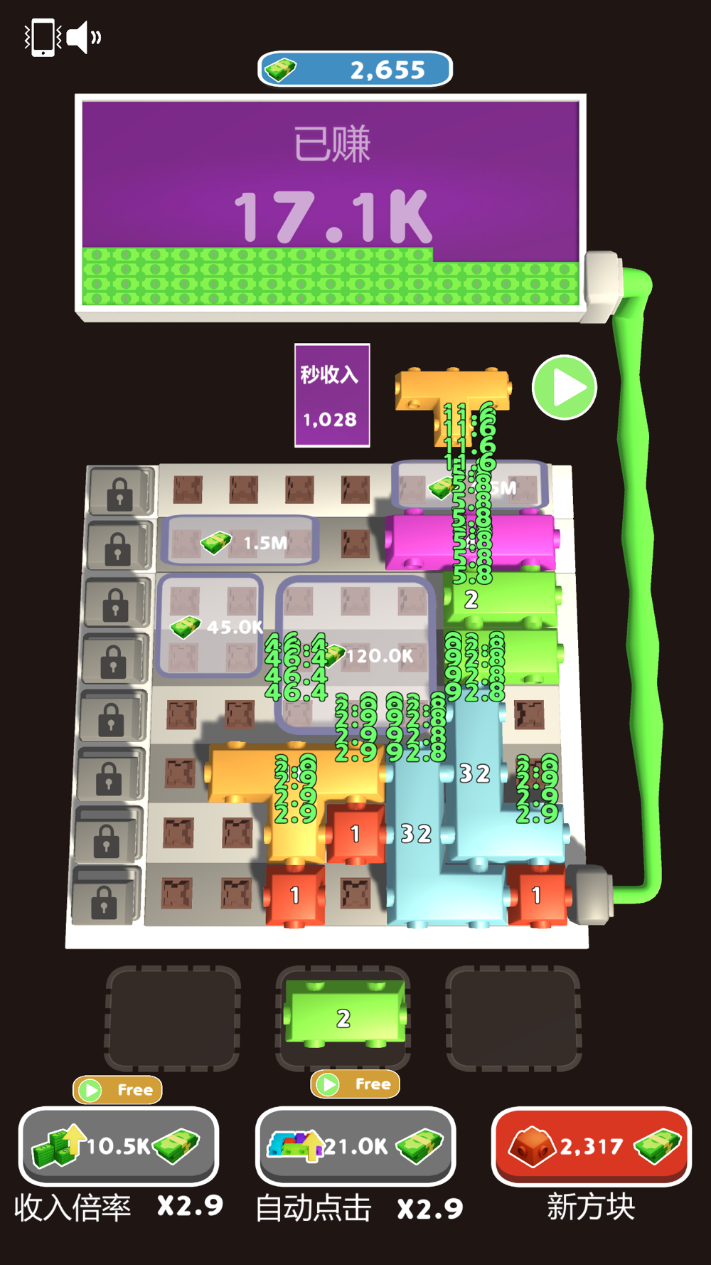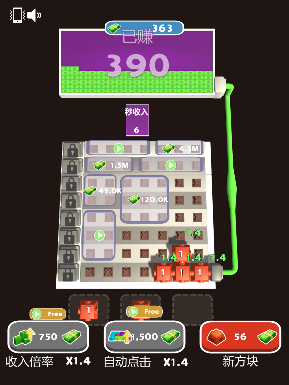 疯狂点击印钞,合成和放置键块创建海量的钞票,成为印钞大亨,走向人生巅峰