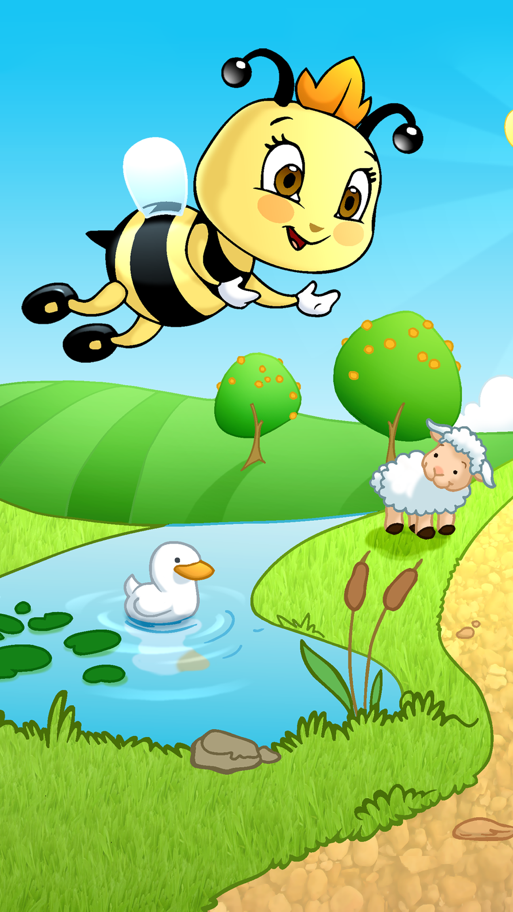 Kezza bee Farm Adventures is an interactive story about a bee flying over a farm looking for the big flower garden. Your child will fall in love with the adorable little bee as she takes them on a wonderful adventure meeting lots of different farm animals along the way. Each animal has a unique character voice and realistic animal sounds, which are heard when the child touches the screen.