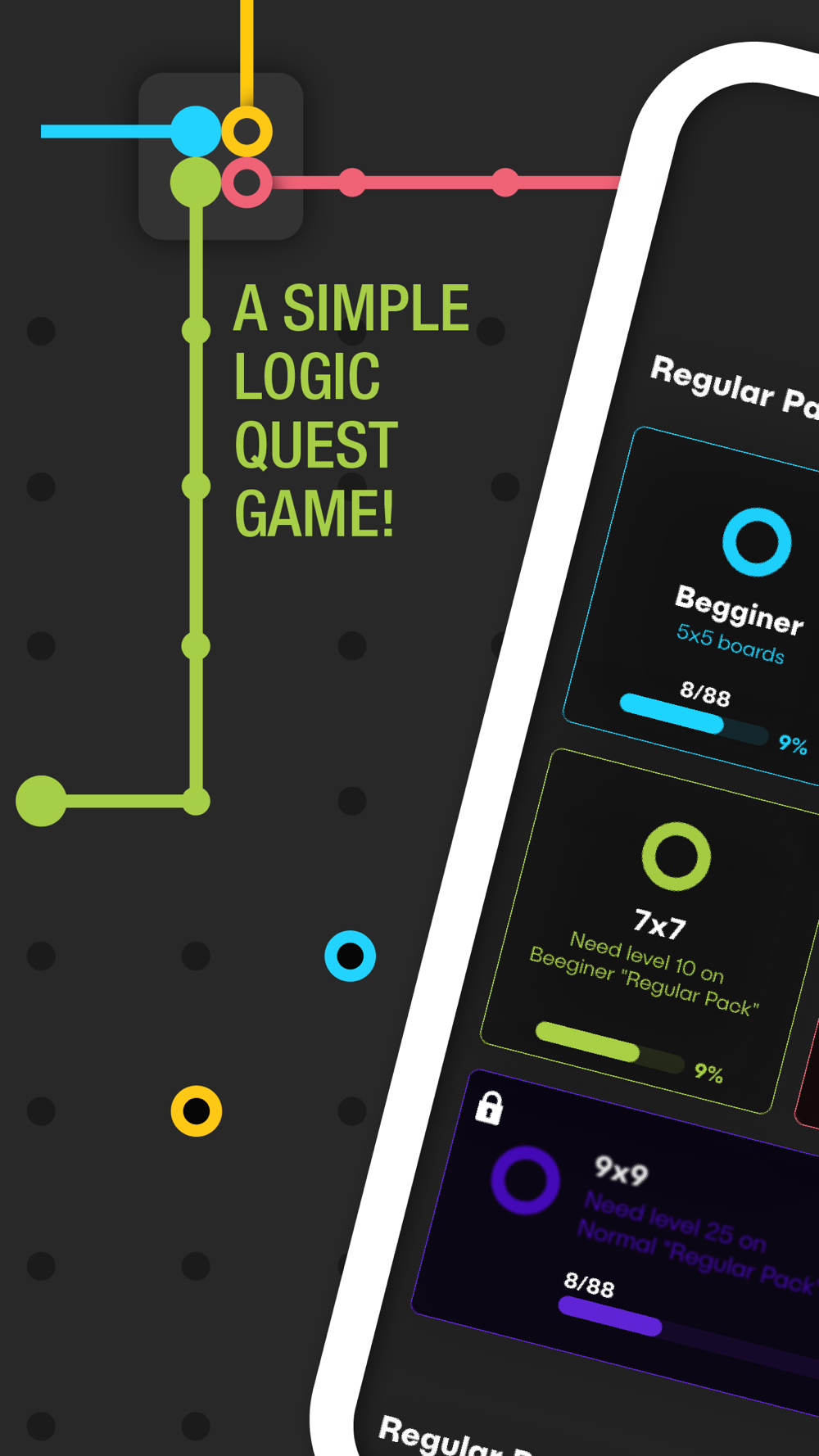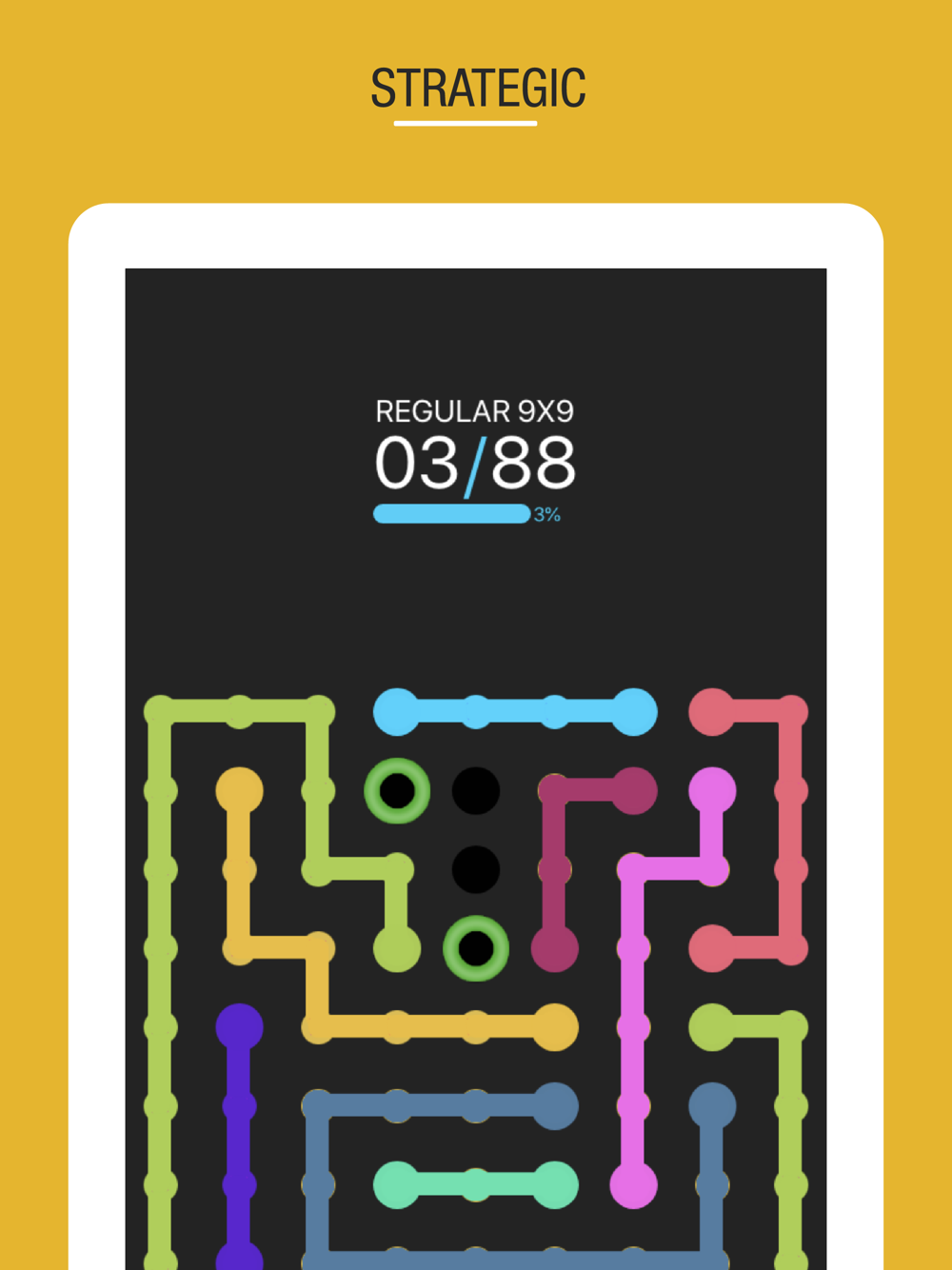 This classic flow dot challenge features dots on the whole free grid and challenges with 5 different difficulties: