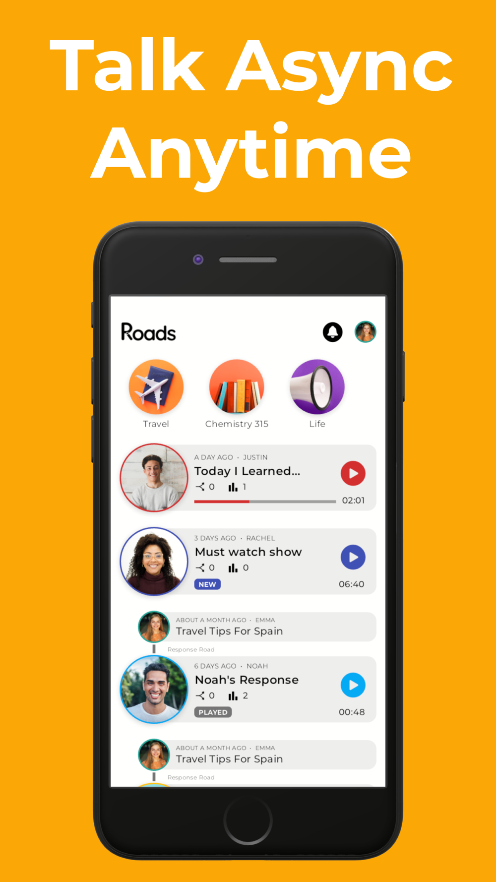 Why Roads? Because conversations aren’t just about talking—they’re about connecting. And with Roads, whether you're into podcasting or just want a place to record voice and chat with friends, you’re building deeper connections every day.