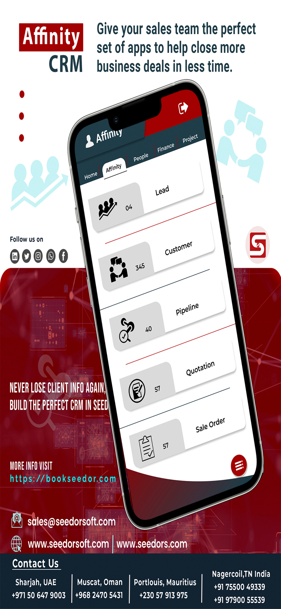Seedoraffinity (CRM) is a technique that allows businesses and other organizations to manage their connections with customers, Give your sales team the perfect set of apps to help close more business deals in less time.