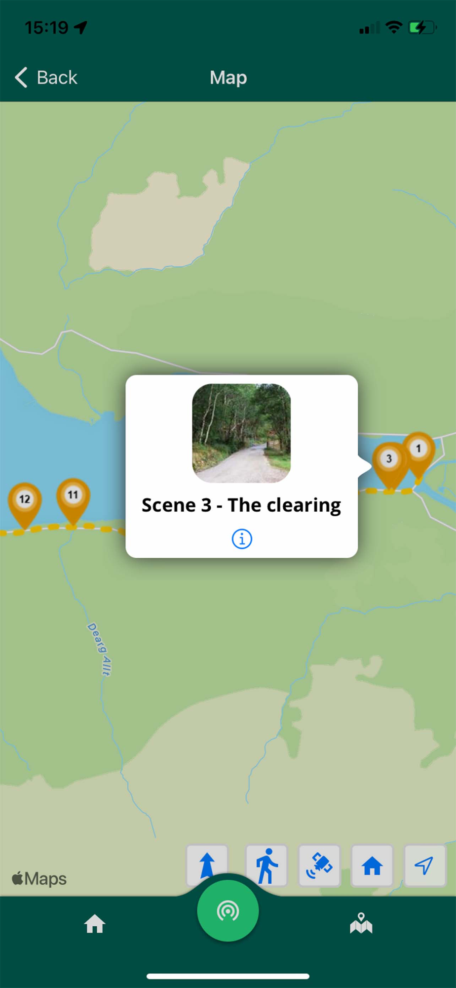 The app is GPS enabled. This is used to show you relevant content based on your location. Please note that you do not have to be at Loch Arkaig Pine Forest in order to access any of the content in the app.