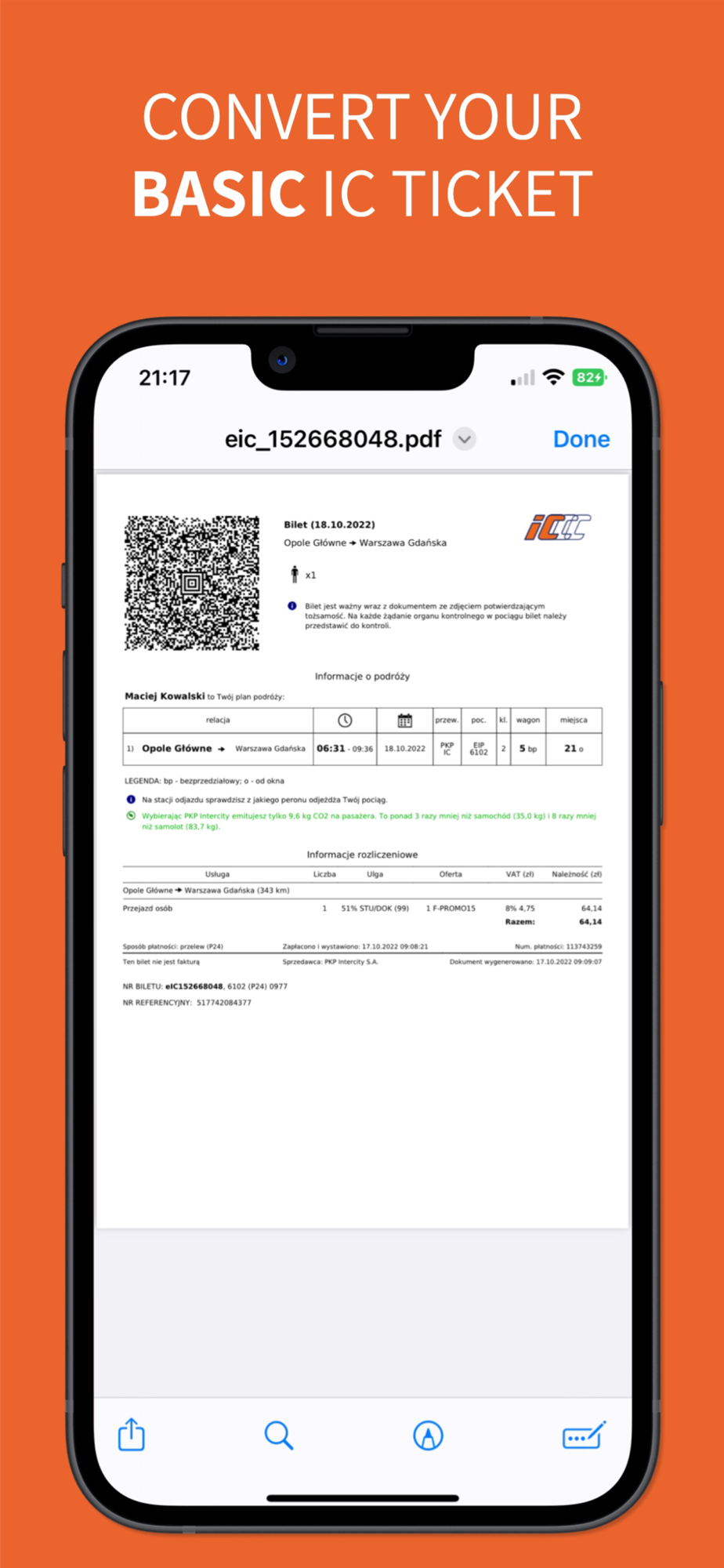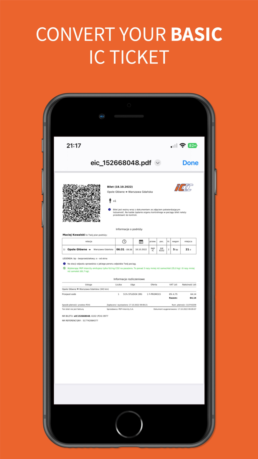 If you have ever been annoyed by searching for the PDF Intercity ticket in your email inbox this app is for you. Change you Intercity PDF ticket into a pass stored into your Wallet.