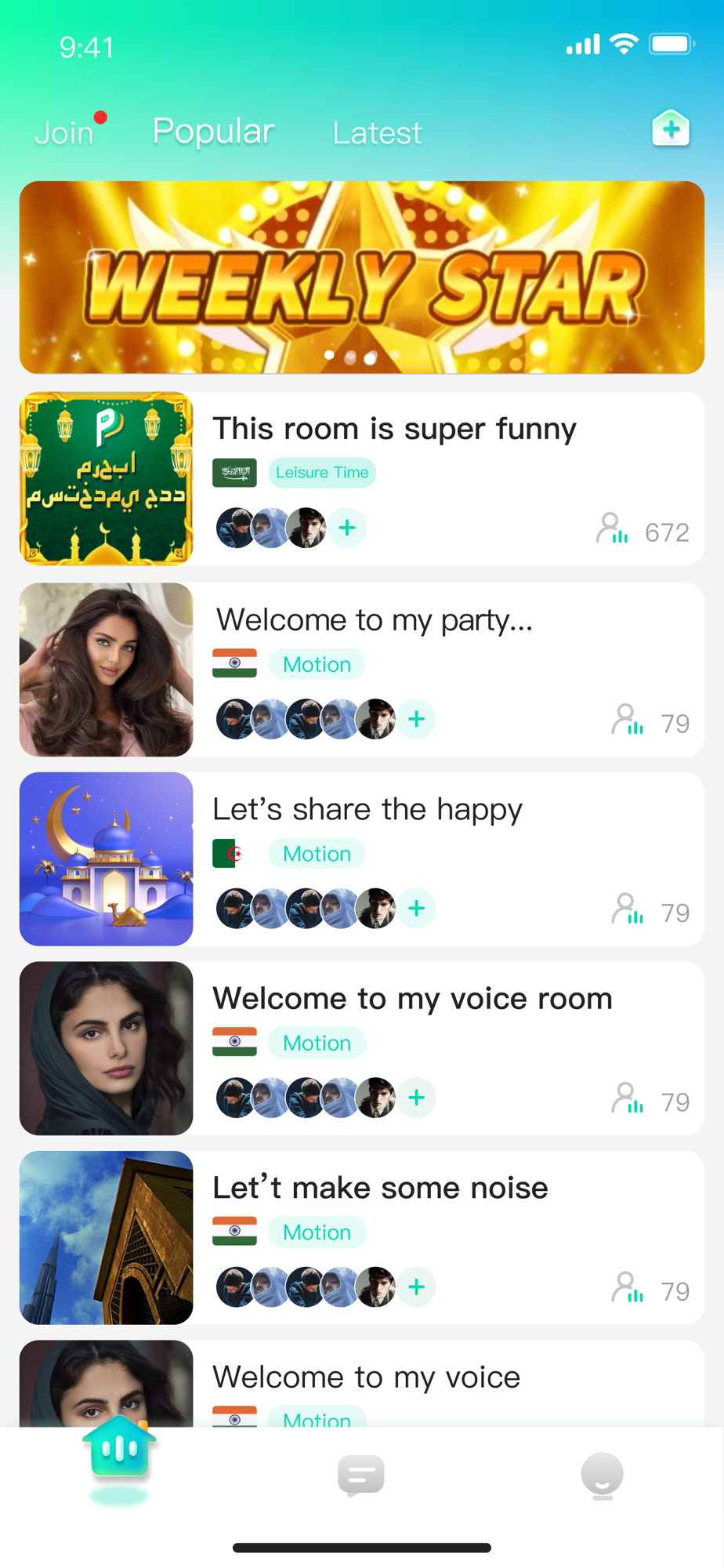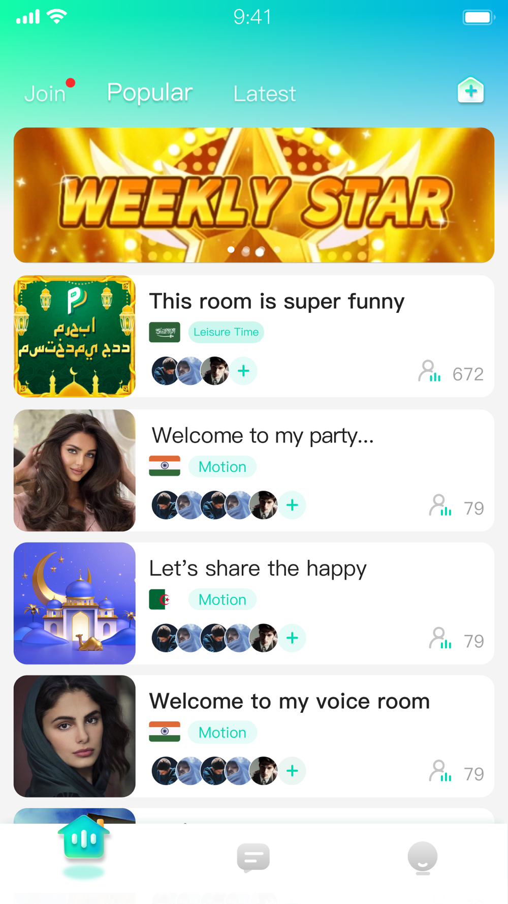 Enjoy a private voice chat party in your room by setting a password to lock the room. Only your friends could enter the room to chat and share the interesting moment in life.It will be a wonderfully private place for you.