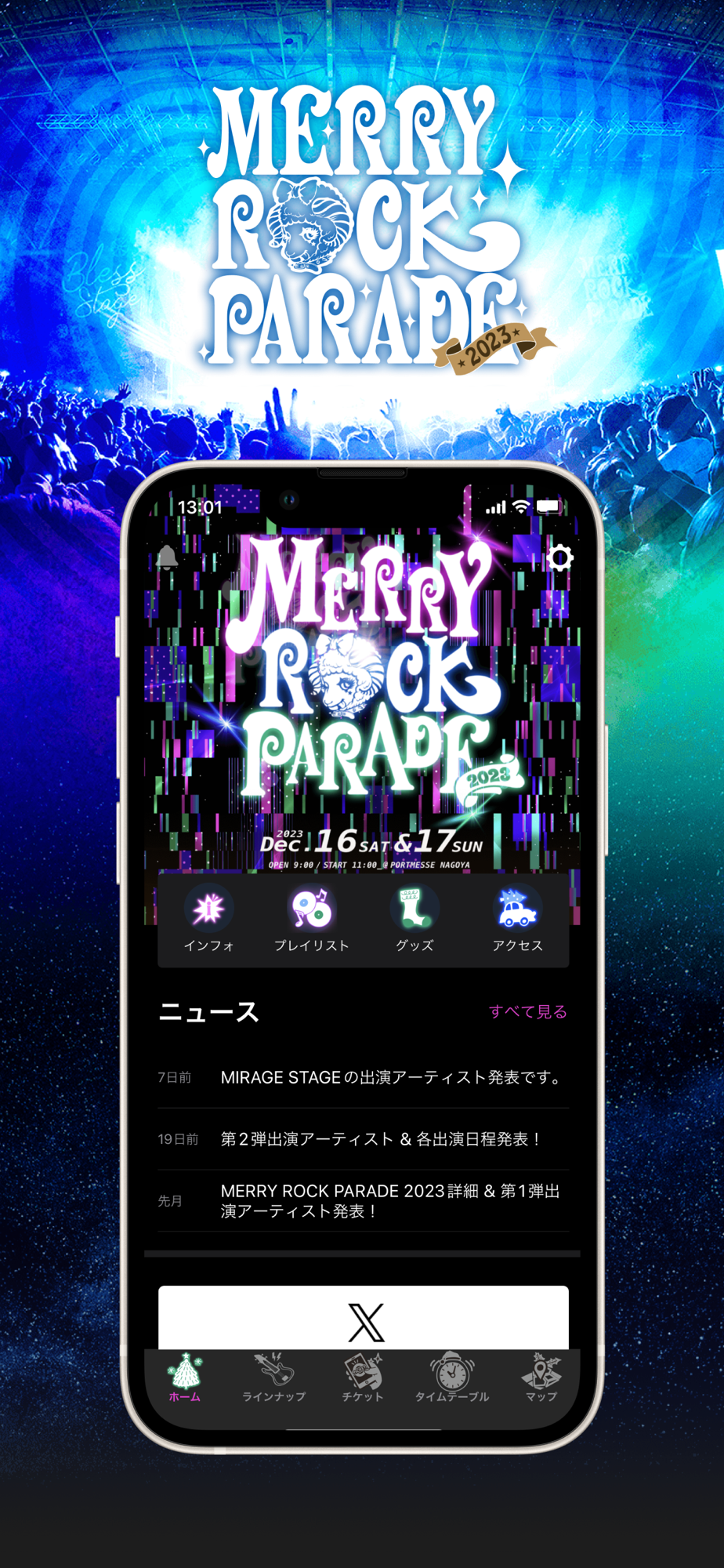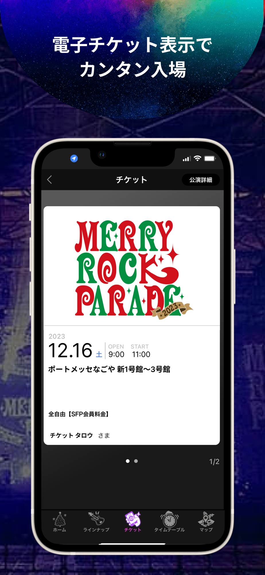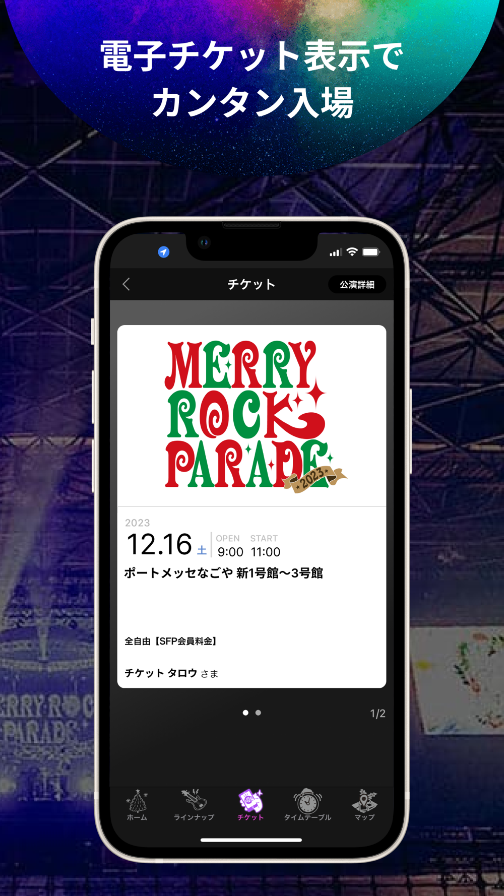 出演アーティストやタイムテーブル、チケットの発券・入場、会場マップやインフォメーションなど、イベントを便利に楽しむための情報・機能を搭載したアプリです。