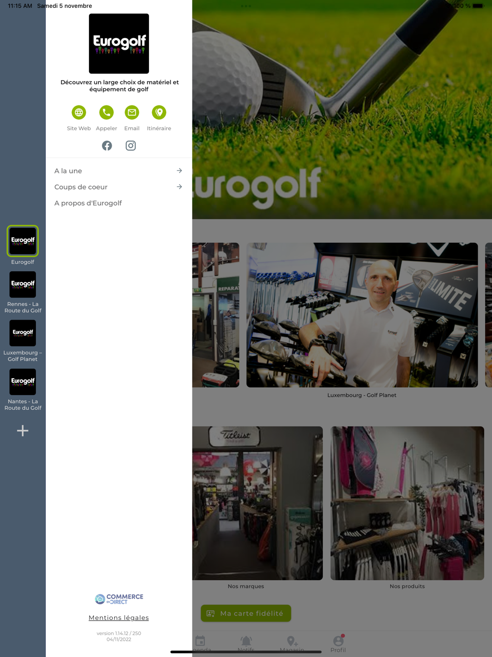 L'App Eurogolf donne accès aux actualités des magasins du groupement Eurogolf. Calendrier des journées fittings et démos, actualités des magasins, actions promotionnelles : tout y est ! Vous serez notifié de toutes les nouveautés matériel, des actus des plus grandes marques de golf et de toutes les informations relatives au magasin Eurogolf le plus proche de chez vous.