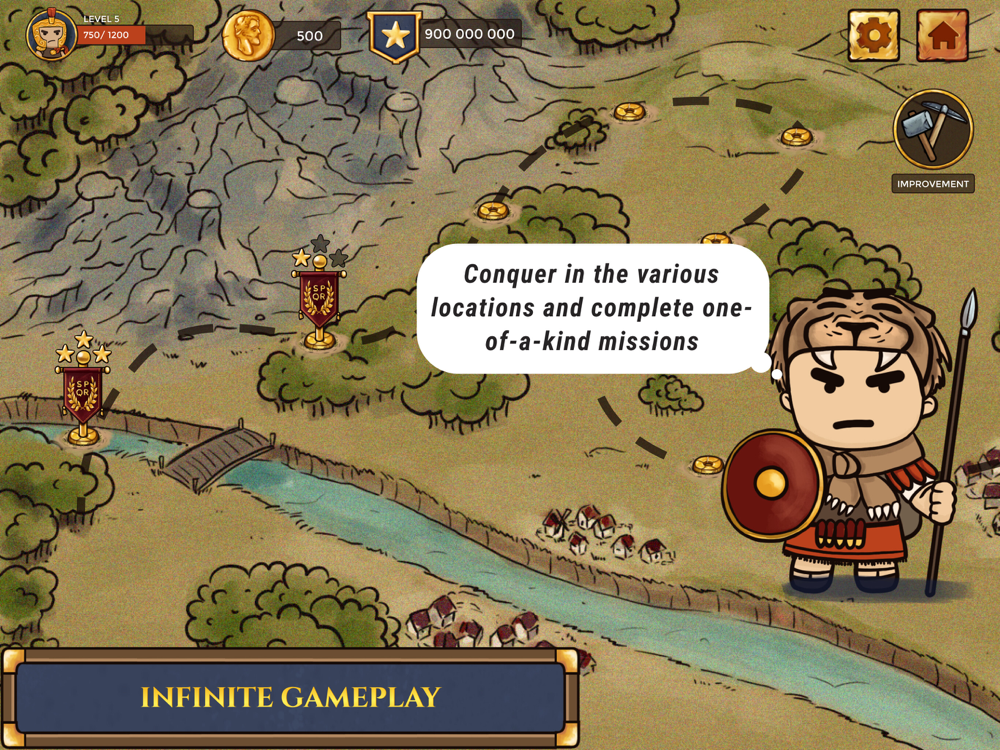 Defend the Roman Empire or run a rebellion against the Empire. Max up the skills, earn XP, and spend them in the Talent Tree. Act wisely to bring the Victory closer!