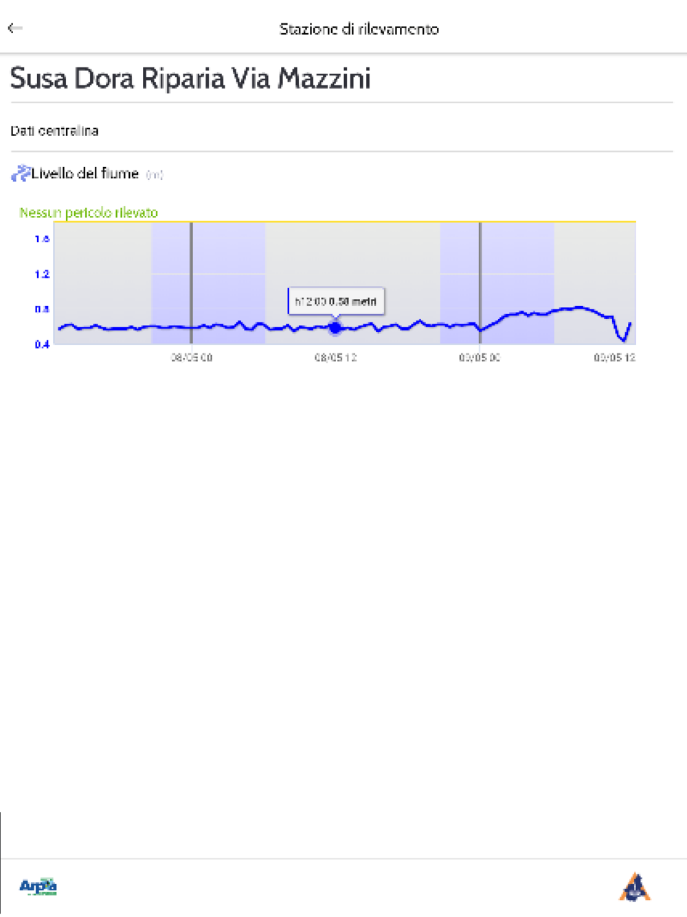 L’app oltre alle notifiche, ti consente di vedere l’andamento in tempo reale delle precipitazioni e dei livelli dei principali corsi d’acqua piemontesi osservati dalla rete meteoidrografica regionale.