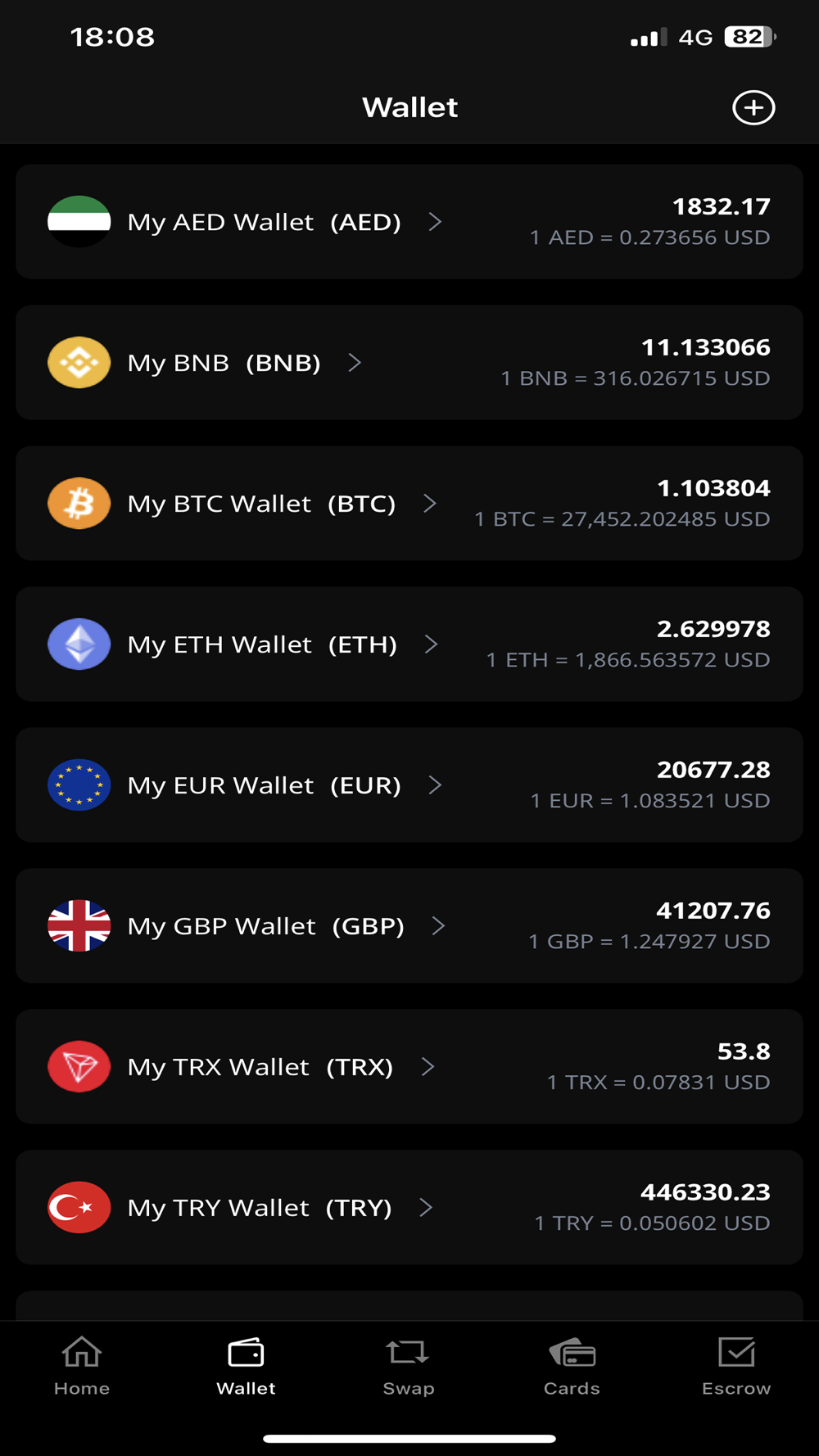 The app supports 10+ fiat currencies, including USD, EUR, GBP, TRY, AED, and more. We provide professional, secure, user-friendly services with the lowest fees. The app is excellent for beginners who want to trade digital assets in a safe and secure environment. You can deposit cryptocurrencies using several payment channels, swap with your fiat balance or create escrows!