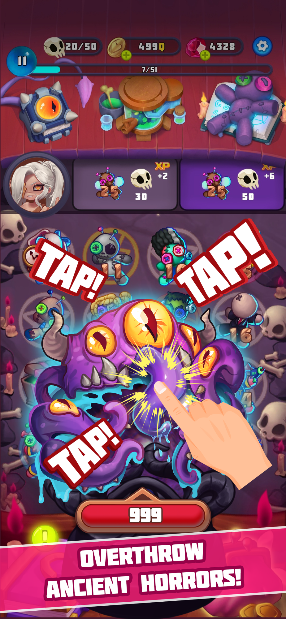 Embark on a mystical gaming journey with Goddess & Magic - one of the most epic merge games. As a devoted follower of ancient goddesses, you will need to merge precious ritual voodoo dolls in order to appease them. Beware, it is strictly forbidden to merge dragons or animals!