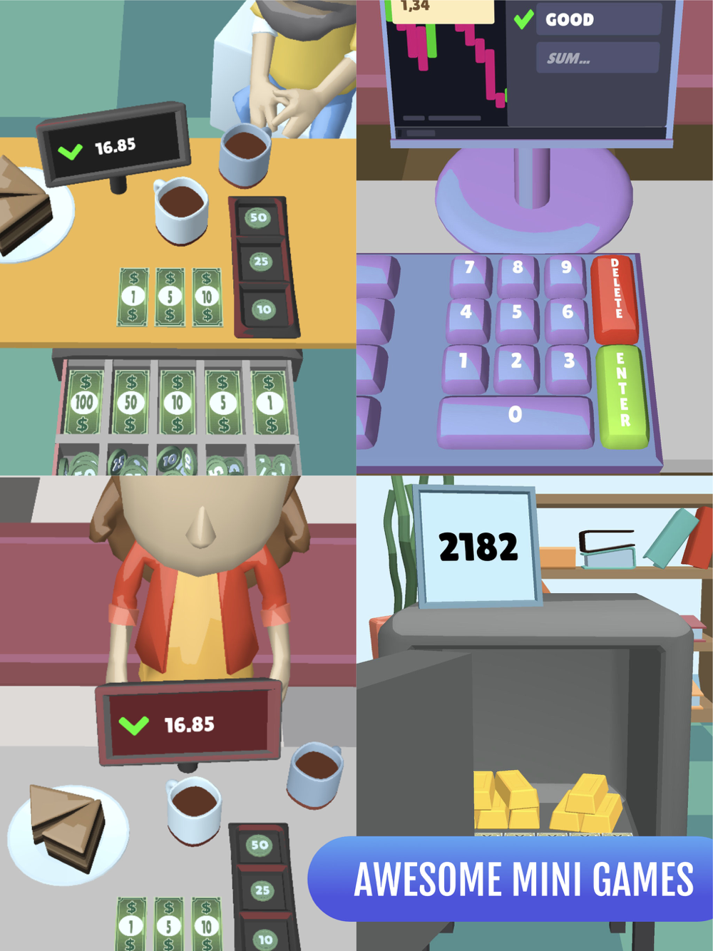 Try yourself as an employee of the Currency Exchanger. Exchange various money, pay by card, withdraw money from an ATM and in a safe.