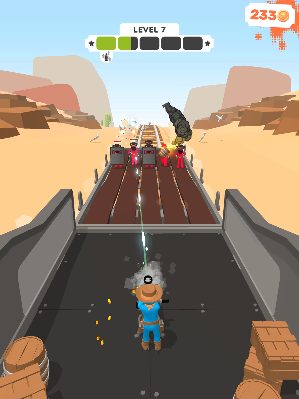 Defend yourself from outlaws! Make a fast escape as you push back waves of enemies trying to catch your train.