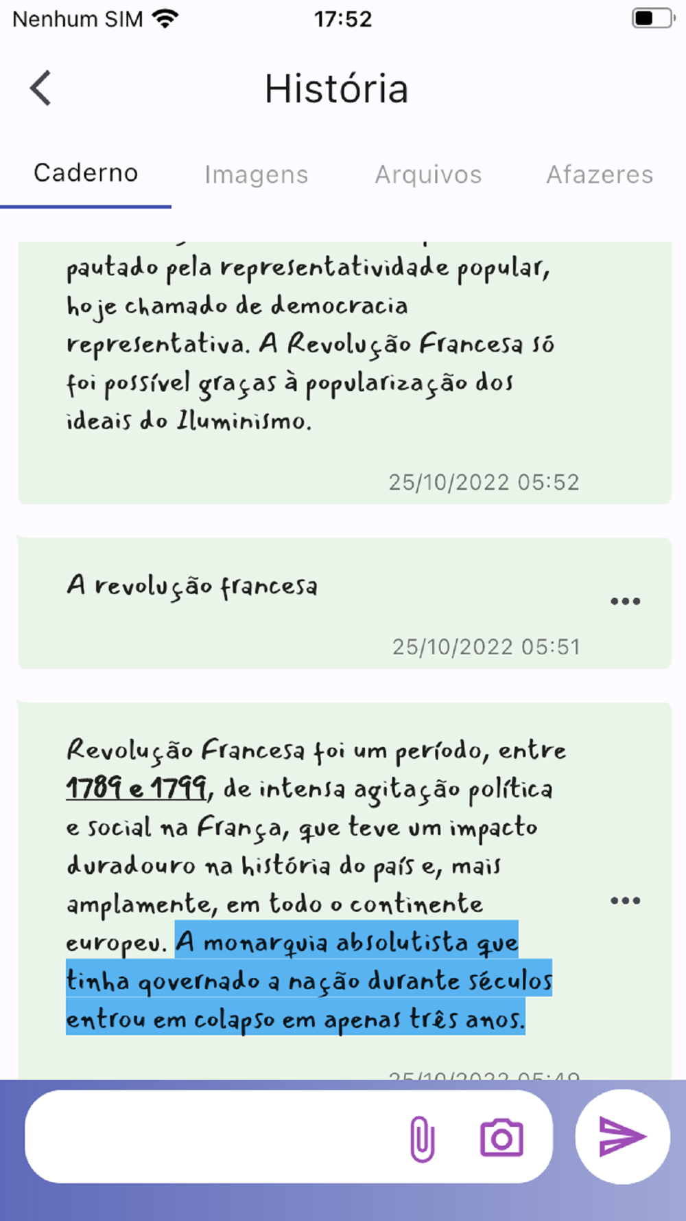 Crie uma matéria para cada turma e deixe suas anotações organizadas. Utilize os lembretes para lembrar das datas que marcou avaliações, anexe materiais didáticos de diferentes formatos, guarde as fotos da turma e muito mais.