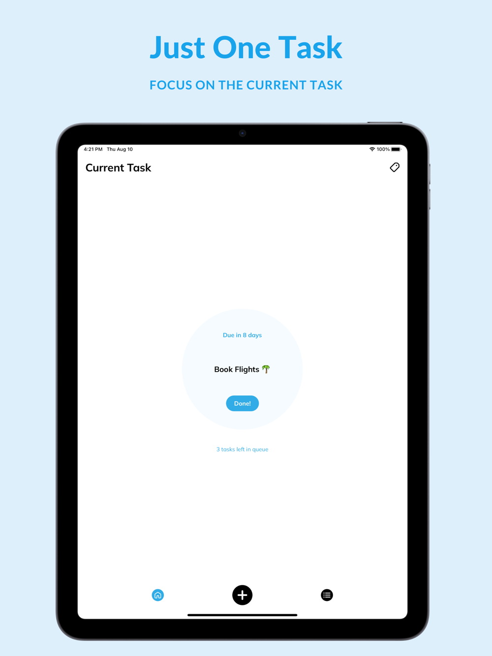 Overwhelmed by your to-do list? Just One Task is a task management app that shows only one task at a time.