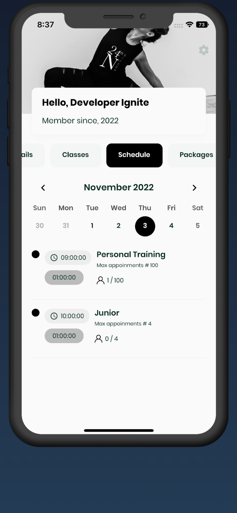 Gym Management App. Gym can show their profile, trainers, upcoming session to customers. Customers can book their classes and purchase plan of gym.
