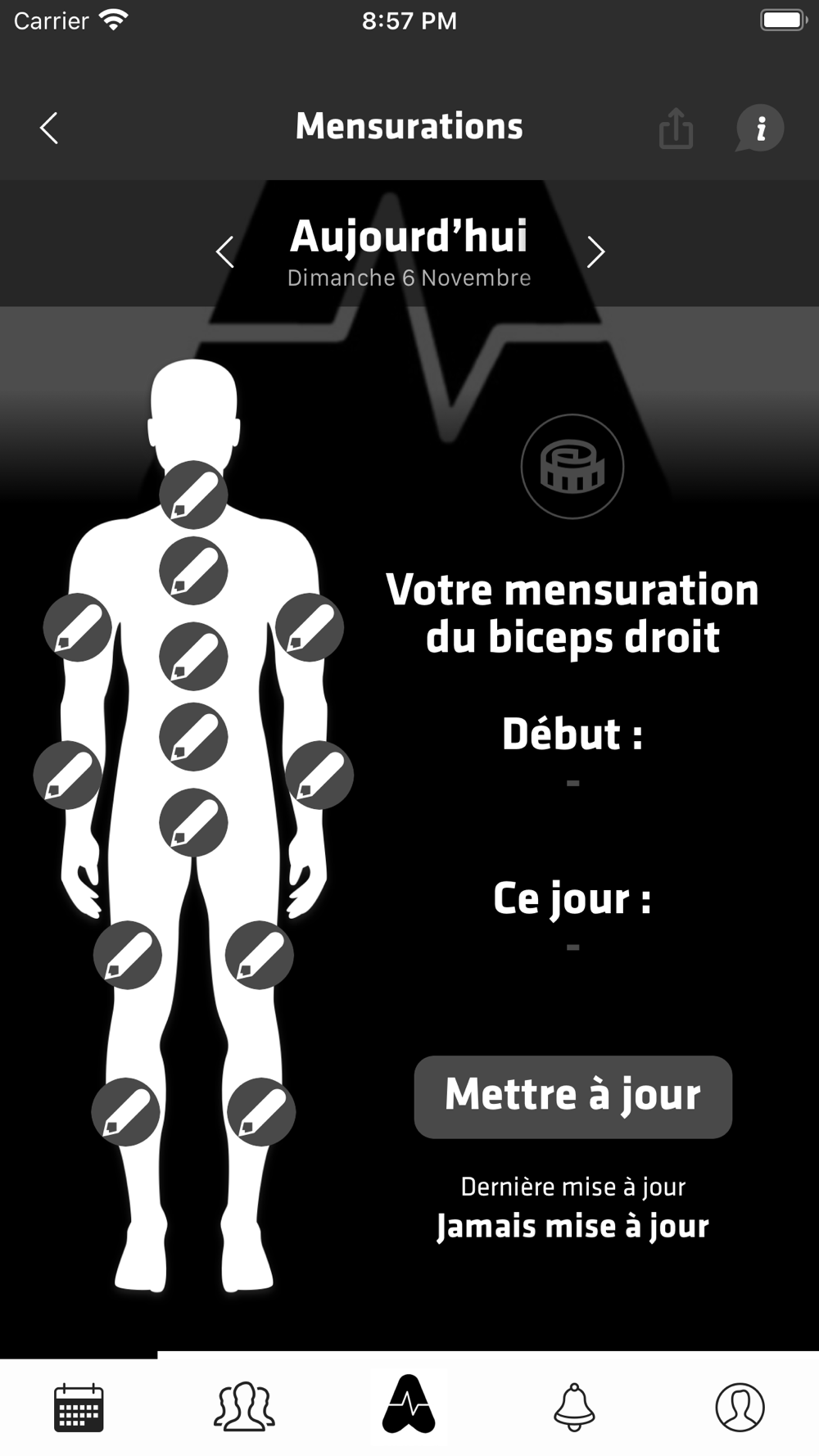 Tu pourras également suivre de près ta progression grâce aux différents graphiques qui enregistreront toutes les données (poids, mensurations, etc.).