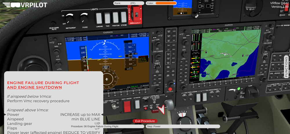 Boost your learning rate with VRflow DA42, an advanced, interactive cockpit procedure trainer for the DA42-NG and DA42-VI. Get ready for your training, check ride or next flight with this strong learning tool, build specifically for efficient cockpit procedure training.