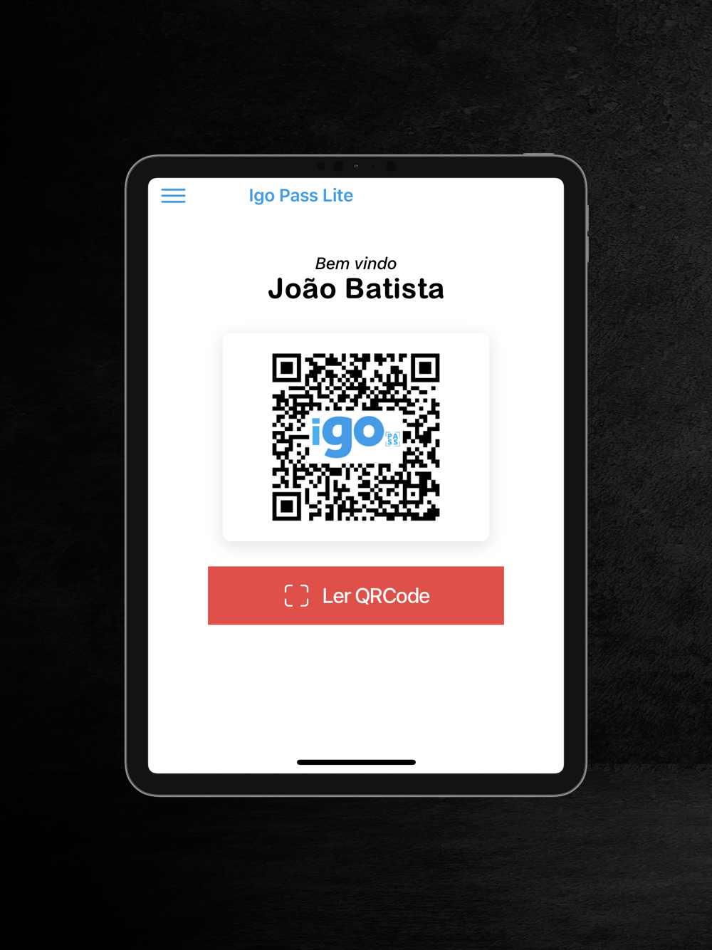 Através de um QRCode o app Igo Pass Lite gerencia a abertura das portas que usam o módulo Igo Pass.