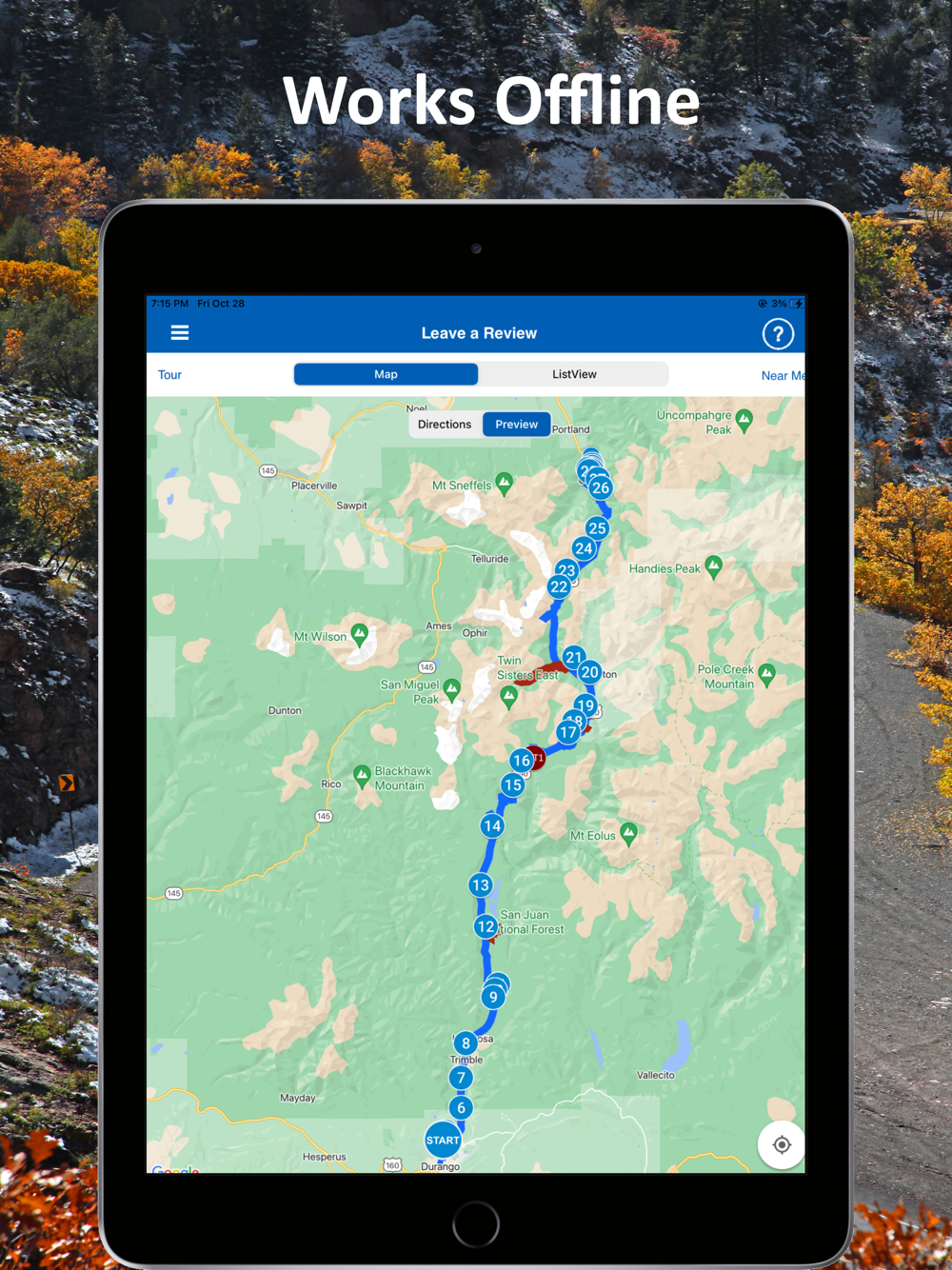Welcome to the offline narrated driving tour of the Million Dollar Highway, Colorado!