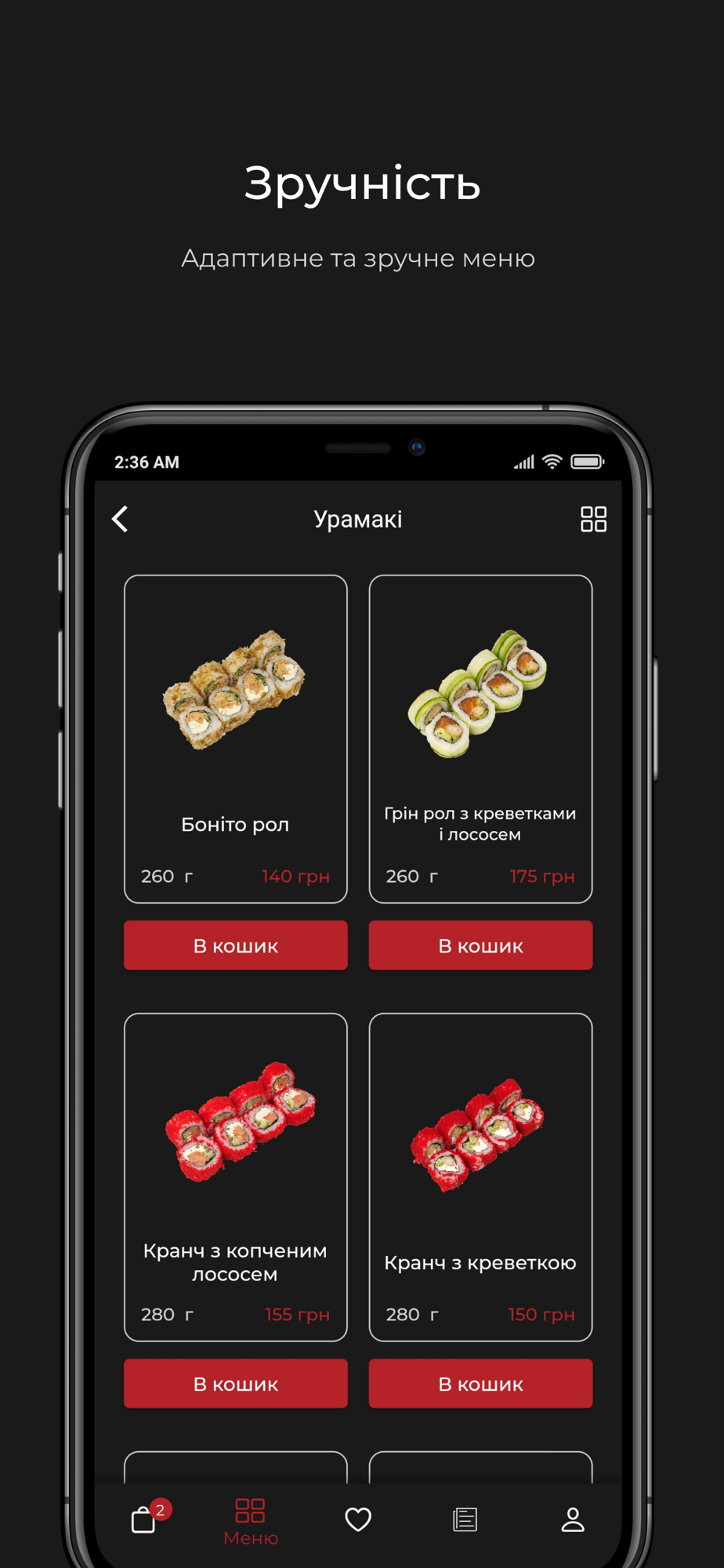 - Ознайомитись із нашим меню та обрати страви на Ваш смак;