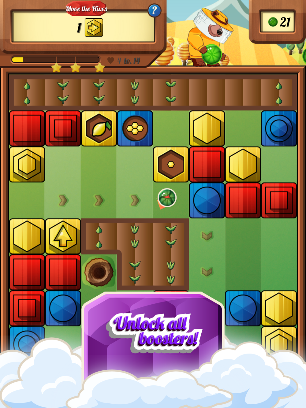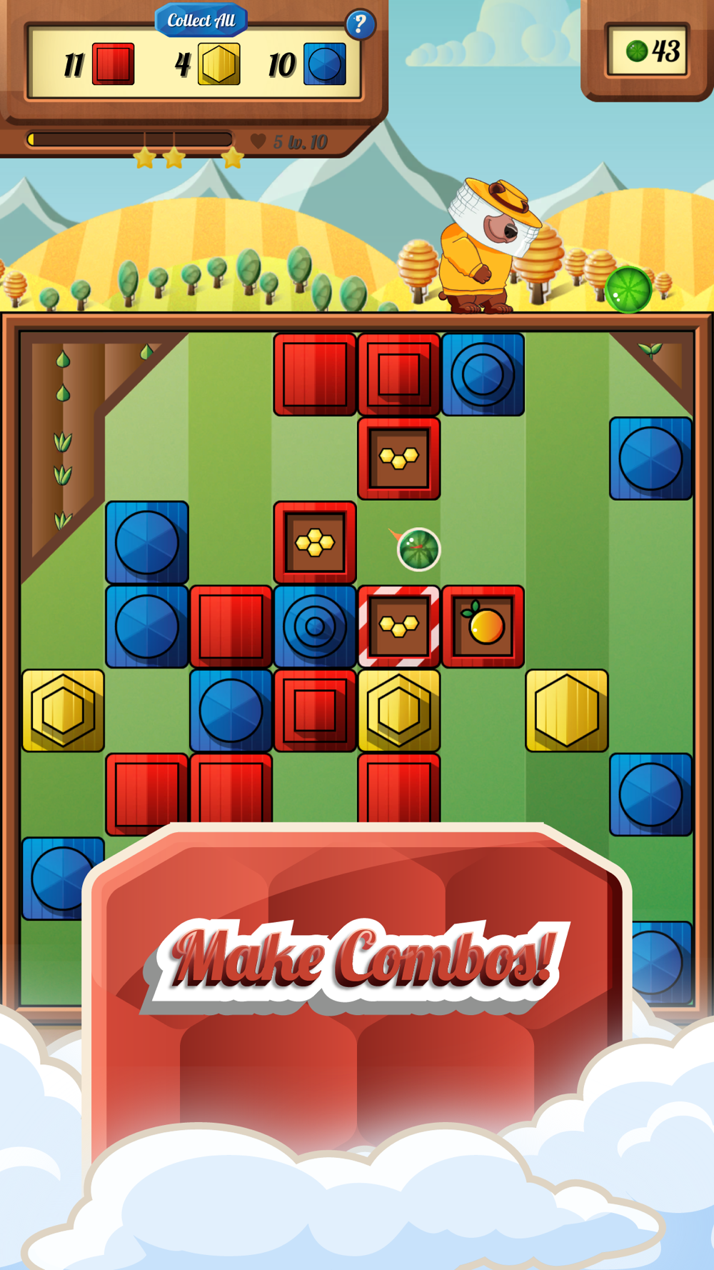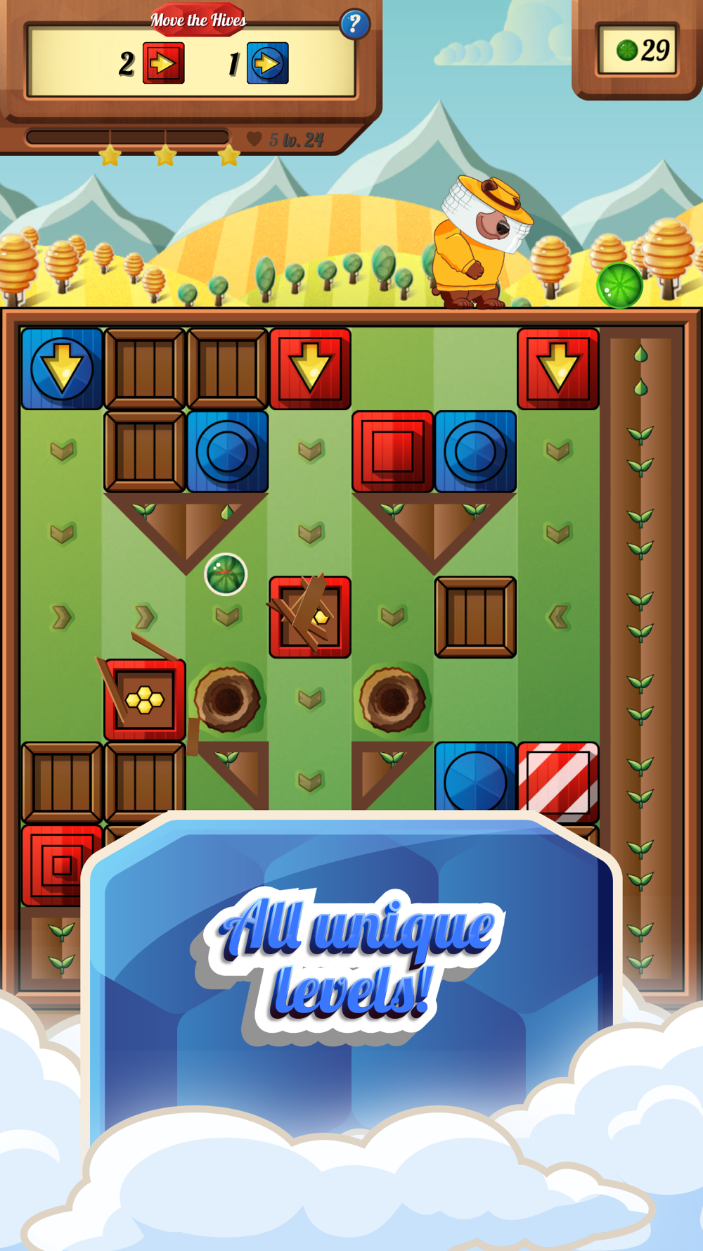 Start playing Honey Hives today! This sweet honey collecting puzzle game is one of the sweetest mobile games of all time! Enjoy endless puzzle fun by collecting every reward and drop of honey from the beehives.