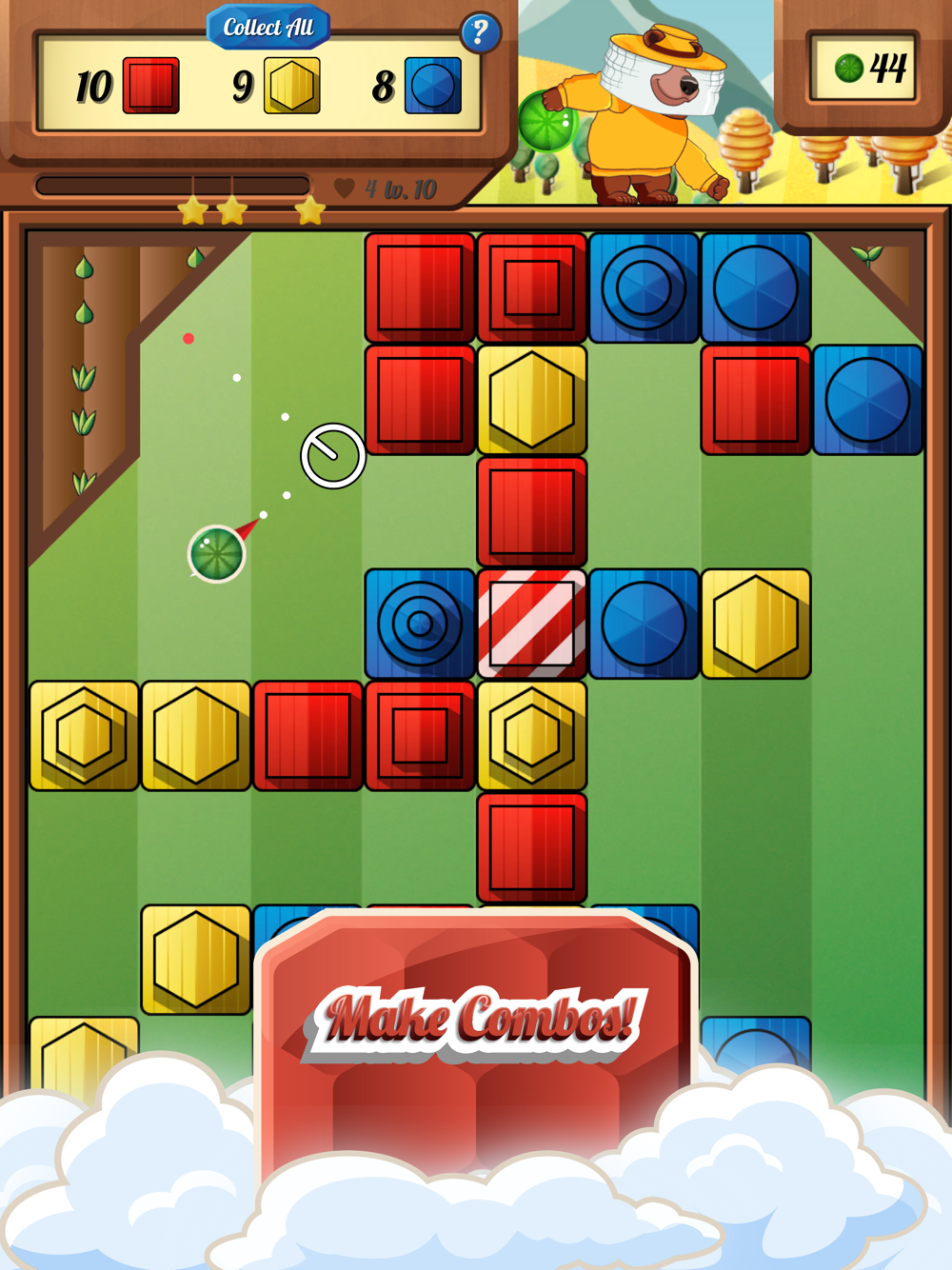 ● Hit at least two of the same color hives in one shot to collect the honey.