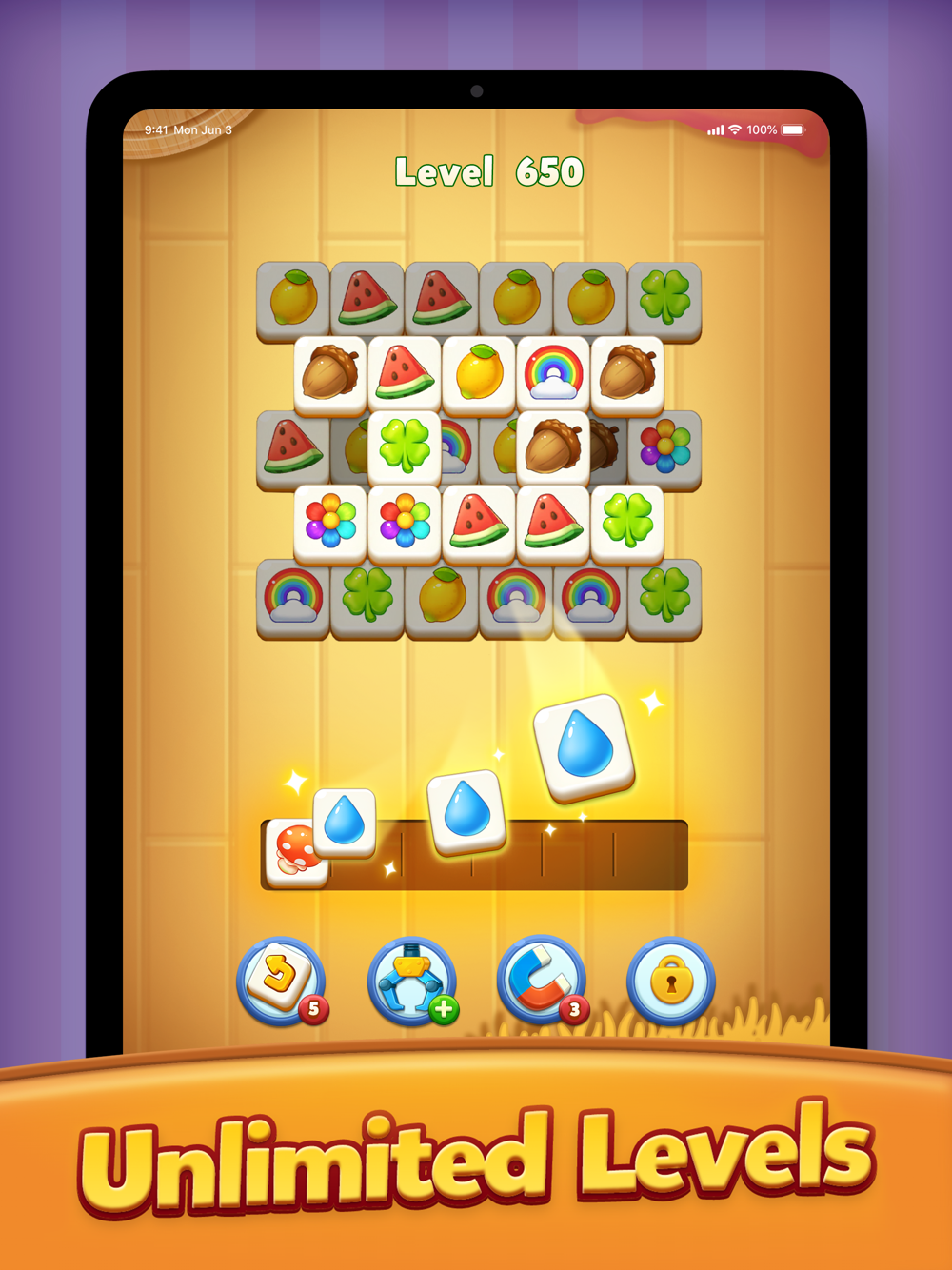 All you need to do is find and collect three identical tiles. When all tiles are removed from the puzzle board, you win! Once the board is filled with 7 tiles, you lose.