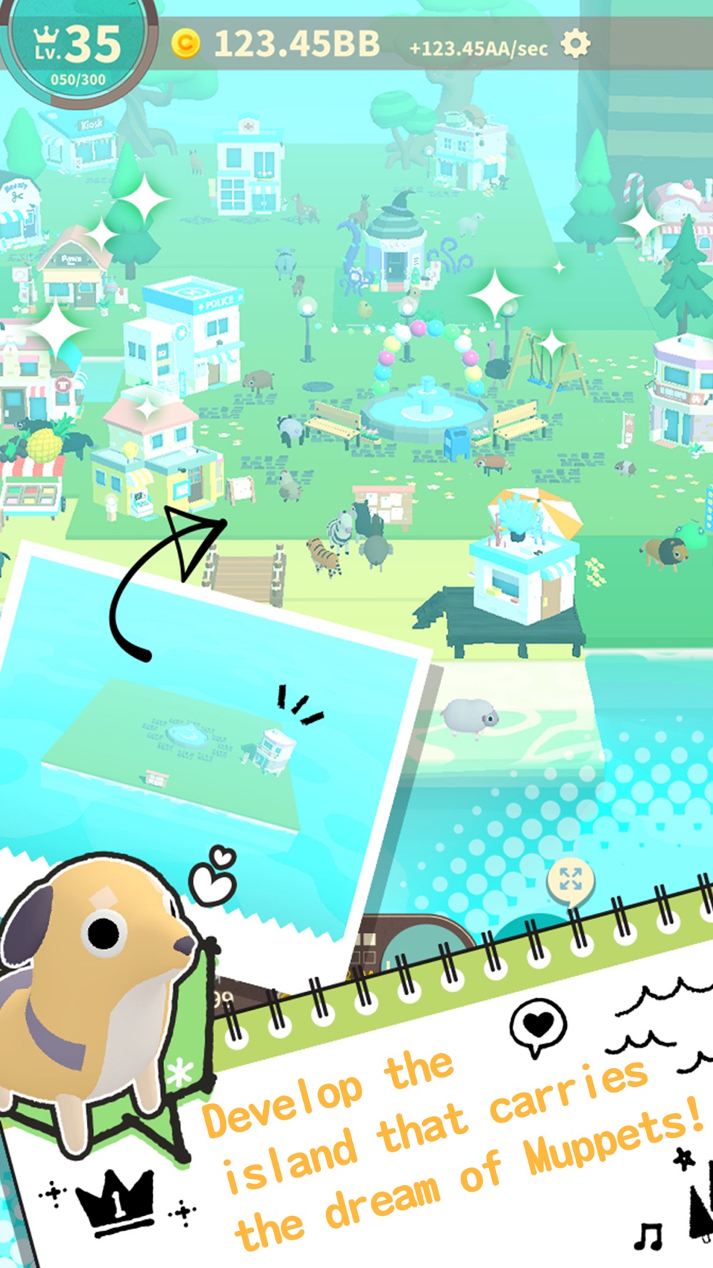 Meet the Muppets, build new facilities, make the island bigger, and make it a comfortable island for the Muppets to live on!