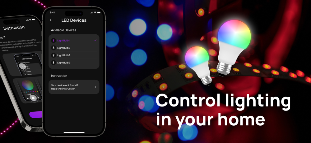 Tạo sự thoải mái trong căn phòng của bạn! Kết nối với đèn hoặc dải LED thông minh của bạn và tùy chỉnh ánh sáng của bạn với ứng dụng của chúng tôi. Kết nối nhanh chóng qua Wifi hoặc Bluetooth. Bảng màu tiện lợi cung cấp nhiều lựa chọn sắc thái. Bạn cũng có thể chọn độ bão hòa và độ sáng.