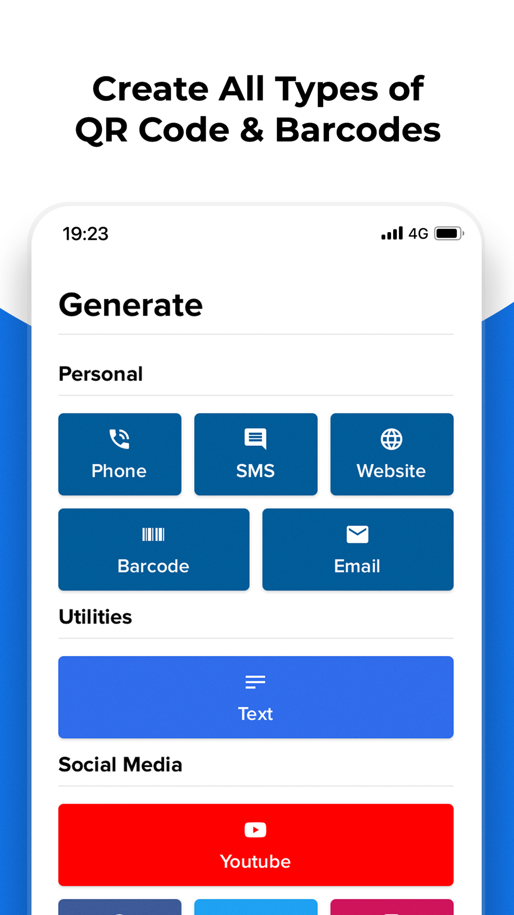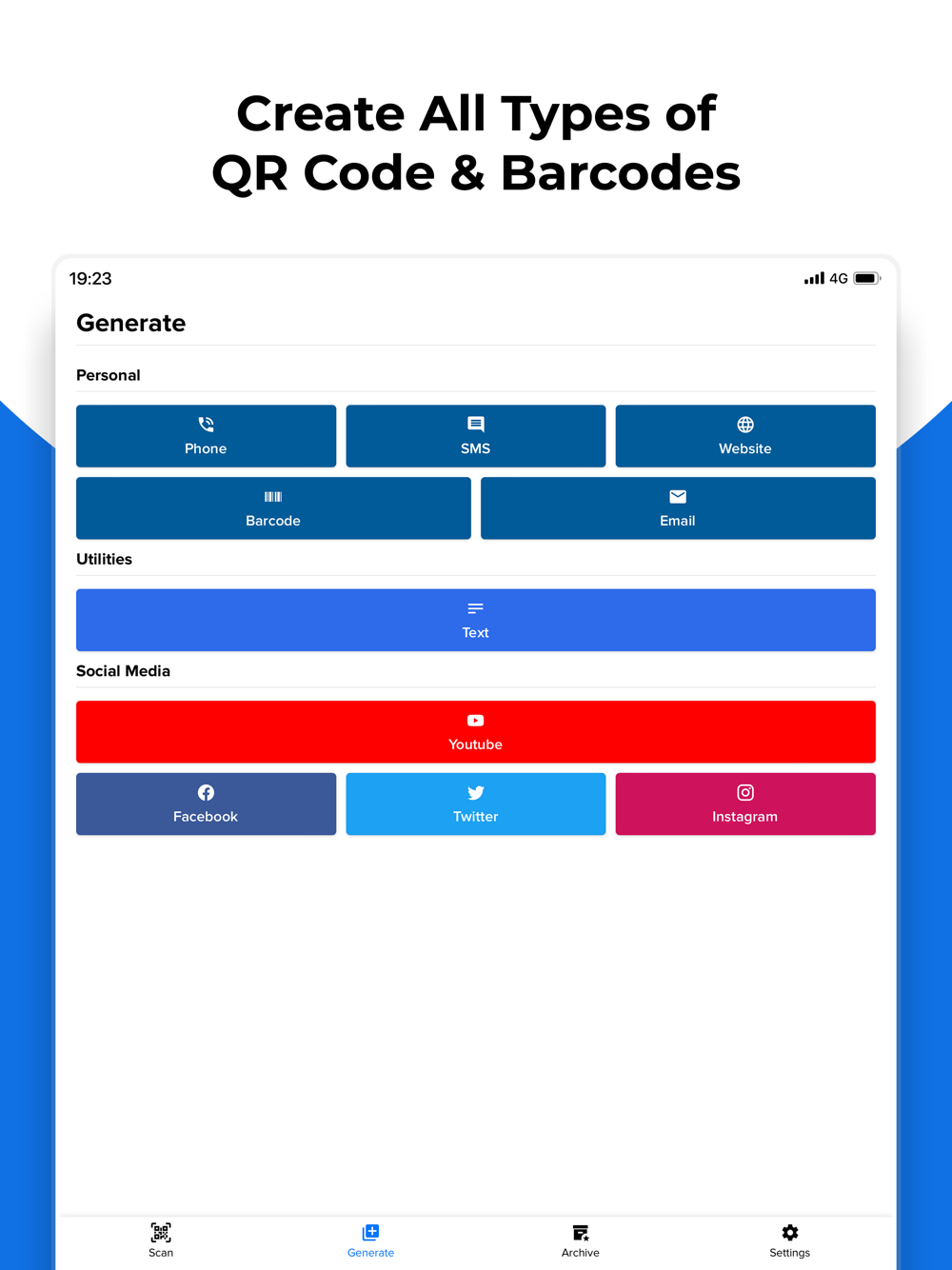 - Created or scanned QR codes and barcodes are archived in the History tab.