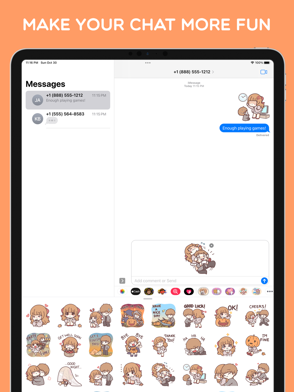 - Tap to put it in the message field and send it