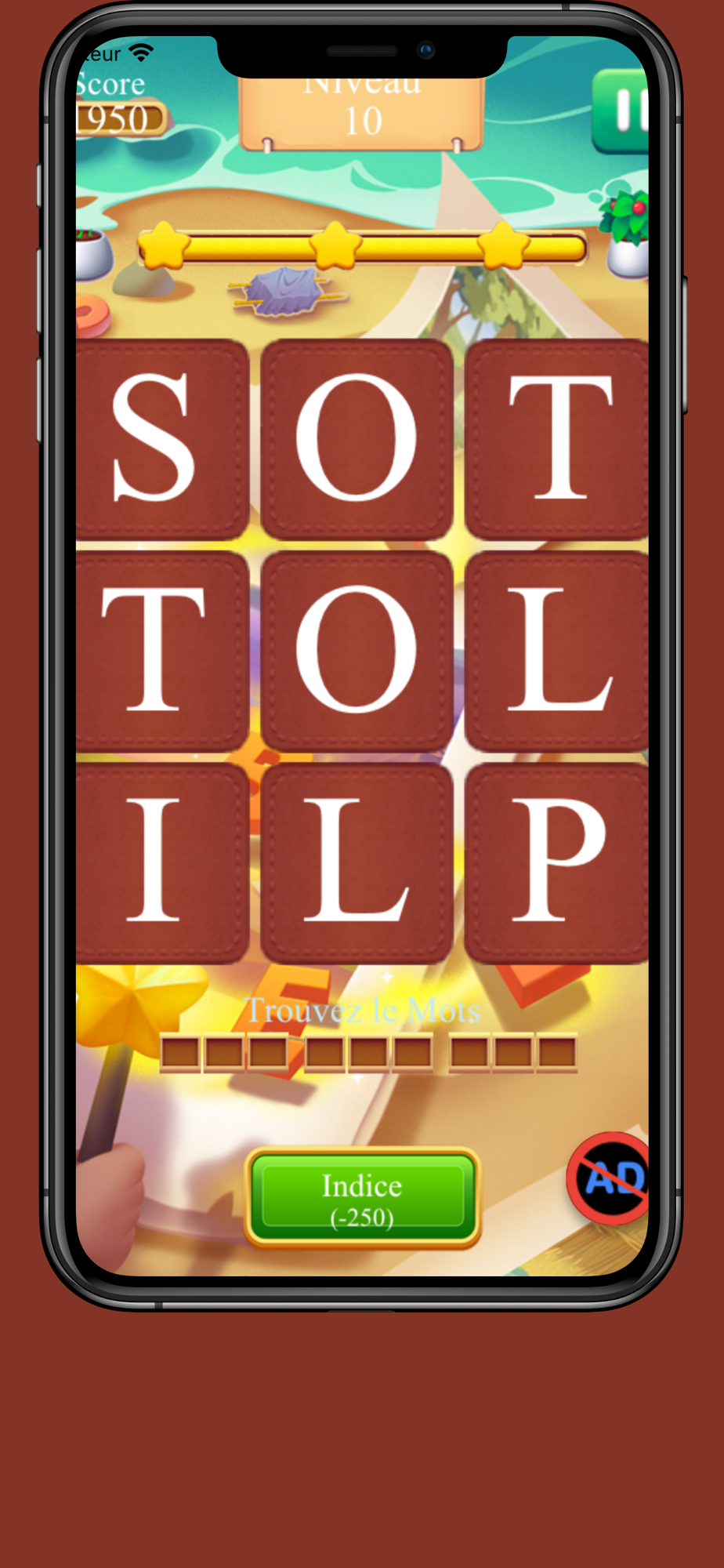 Défiez le célèbre jeu de mots en français King Des Mots avec plus de 100 niveaux de puzzle de mots à deviner