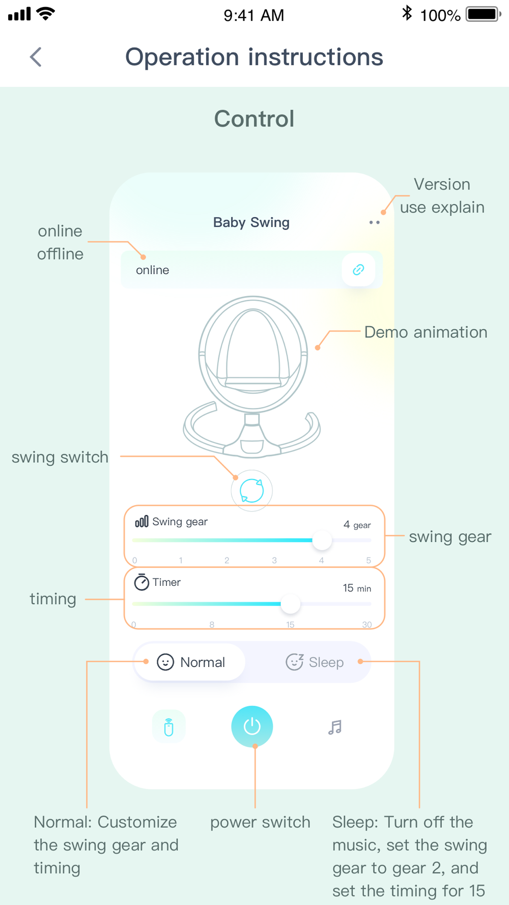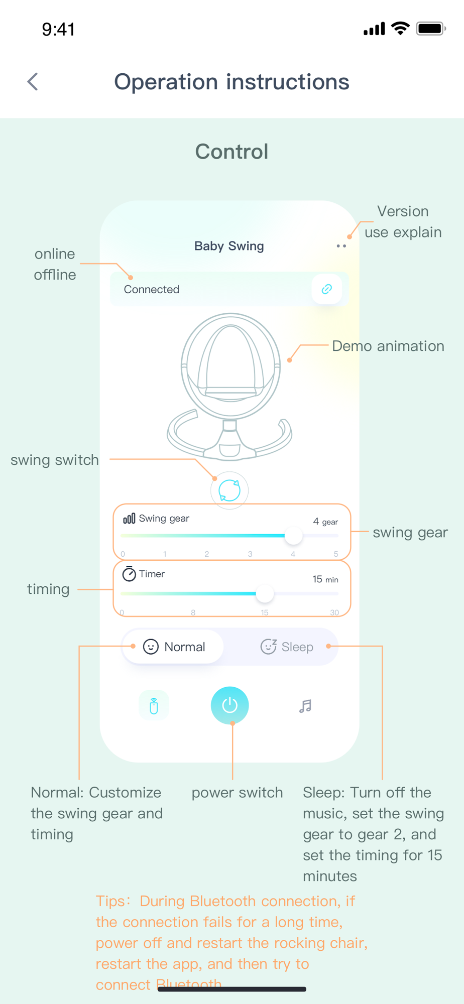 Bluetooth control child rocking chair, music playing, mode control