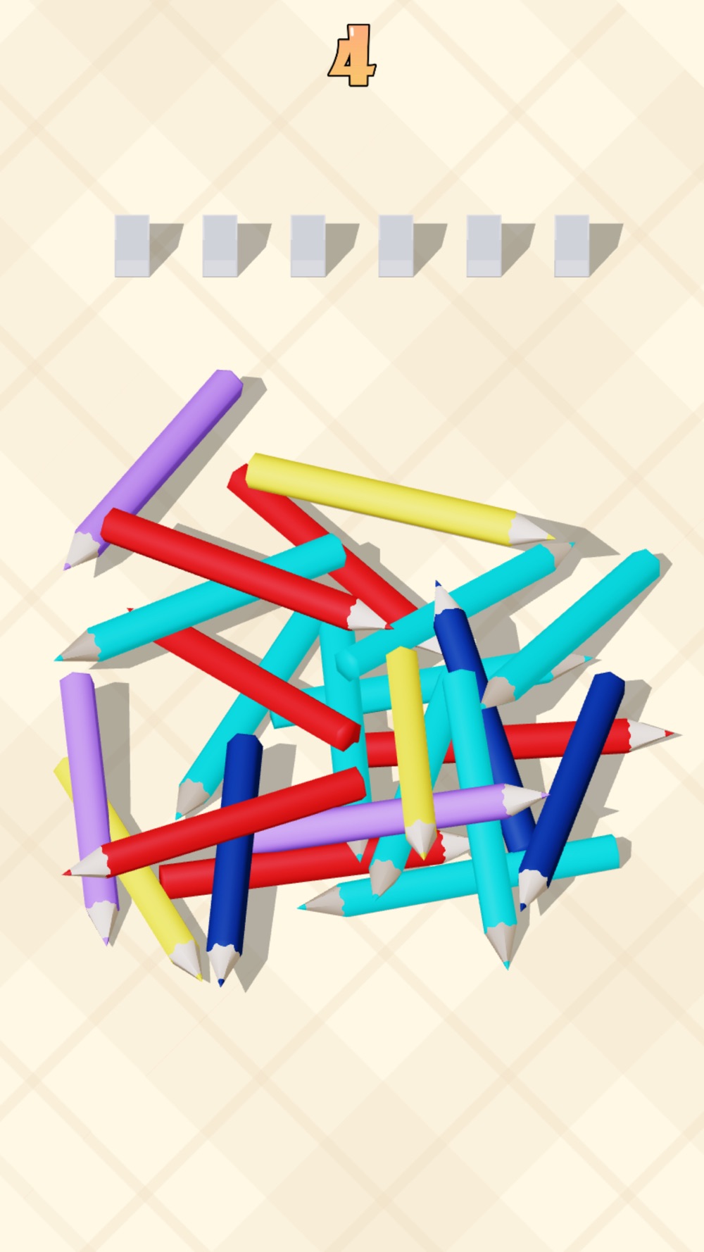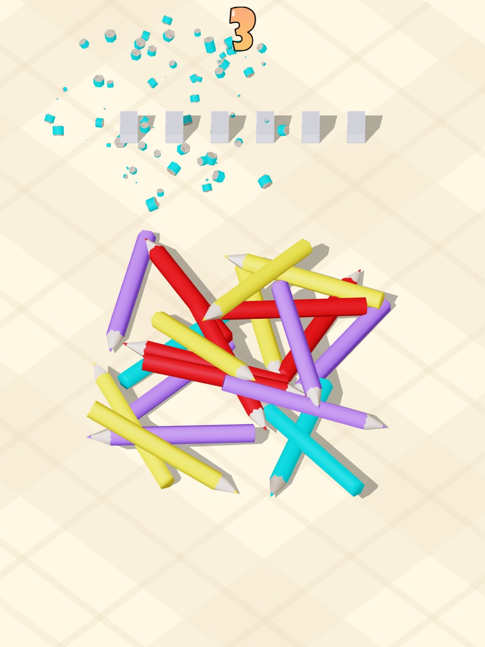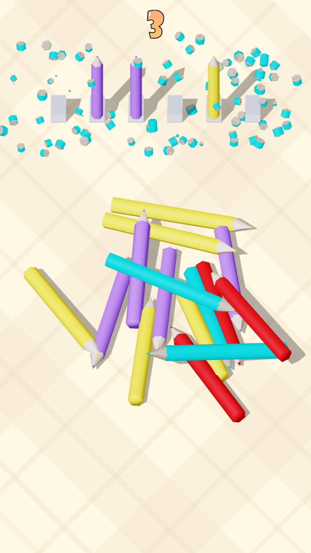 Click to select a pencil. Three pencils with the same color can be eliminated.